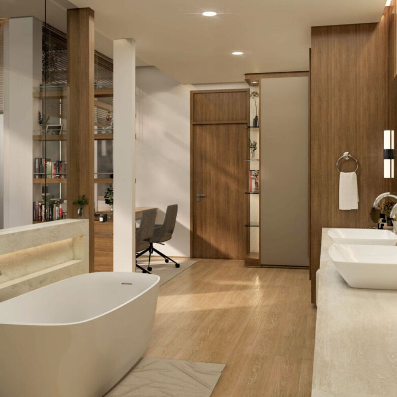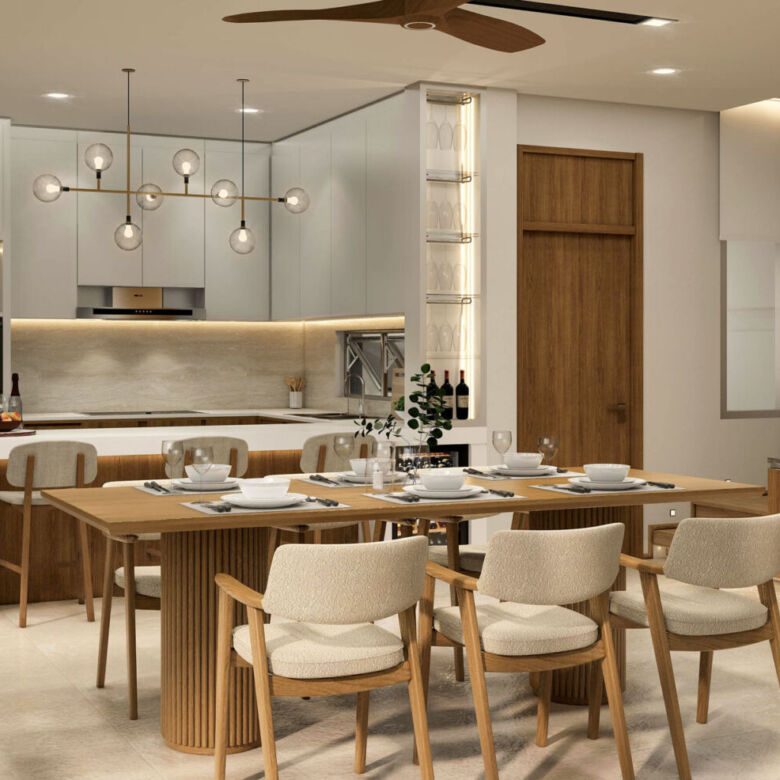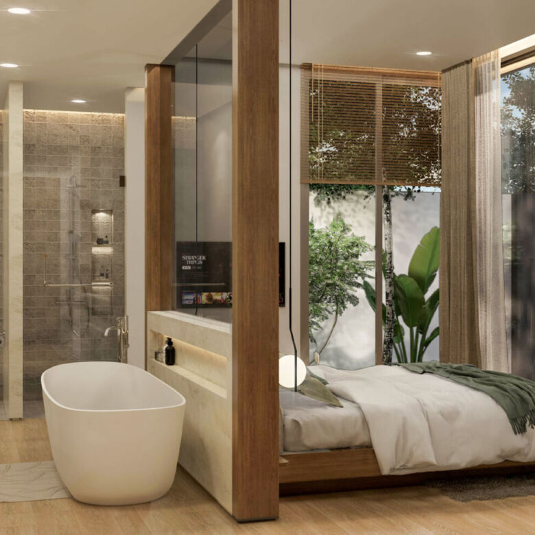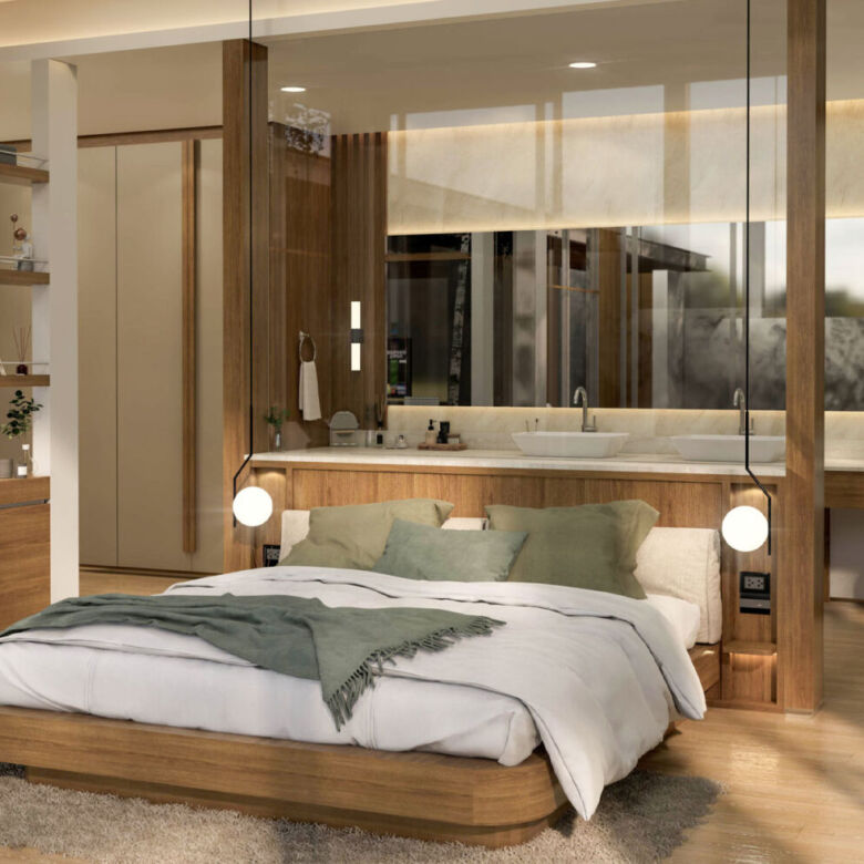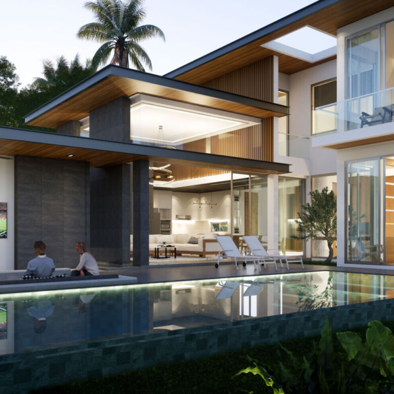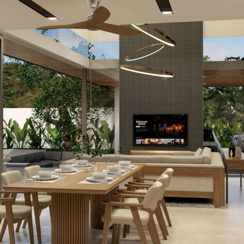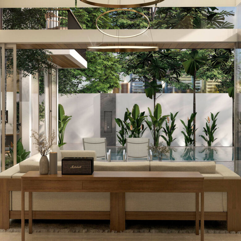 Sitting on a 320 sqm land plot with a total usable area of 315 sqm, the villa is laid out over two floors and includes a large 4×10 meter private swimming pool, a spacious sunken lounge area with LCD TV, and beautifully landscaped outdoor living zones. The villa’s open-plan layout highlights 4.6-meter-high ceilings and large windows that draw in natural light and garden views. Every detail is designed to elevate your lifestyle, from premium finishes and teak wood elements to seamless indoor-outdoor flow.