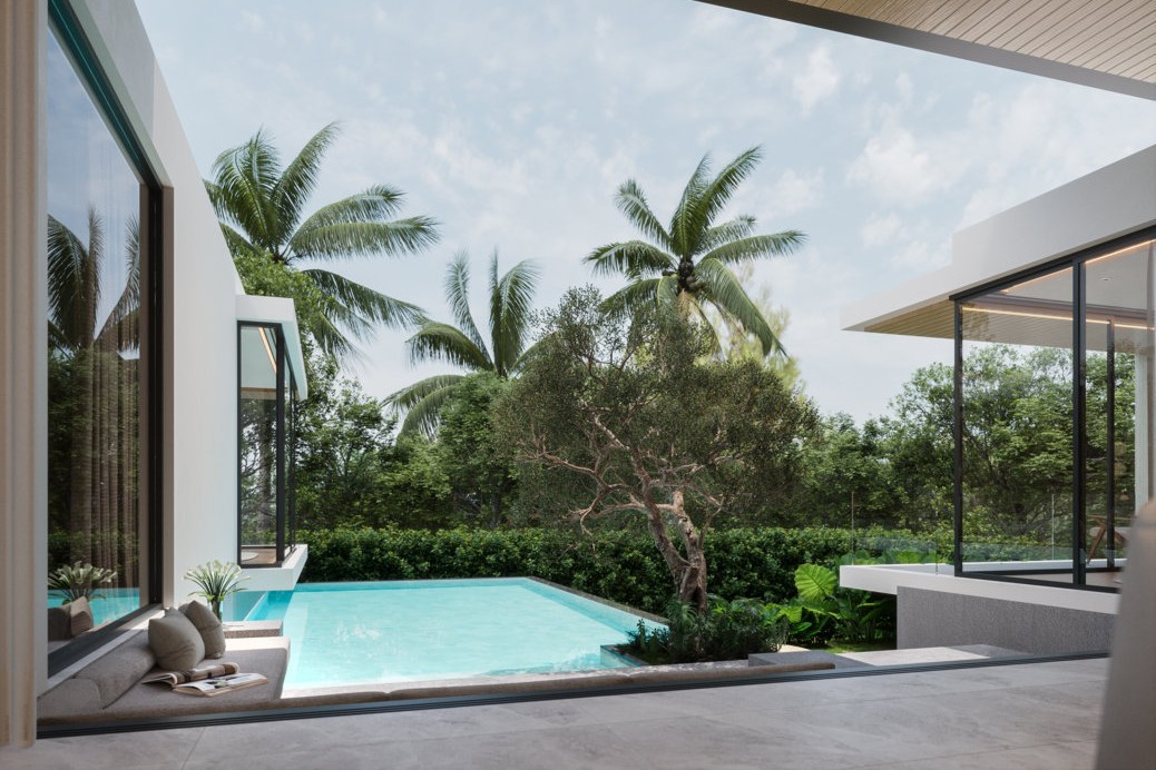 With only 18 meticulously designed units spanning a total project area of 10,749 square meters, this hillside development offers unparalleled privacy, surrounded by lush tropical rainforests and elevated for breathtaking views, making it one of Phuket’s premier private pool villa destinations.