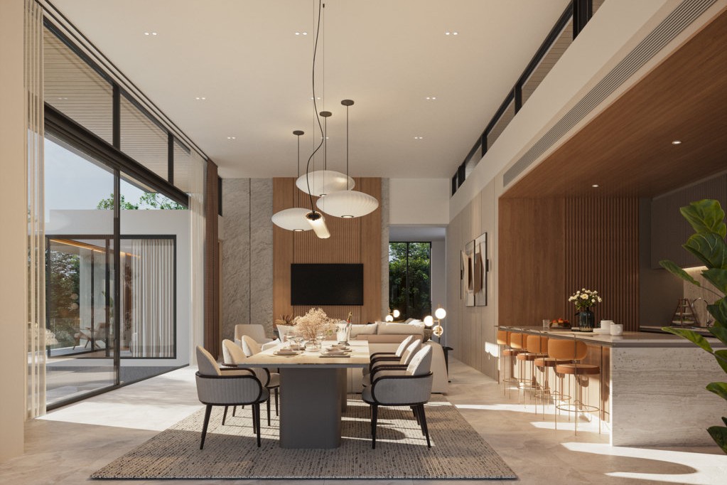 Amber Chamber redefines luxury living with its modern architecture, infinity-edge pools, and seamless integration with the surrounding environment. Each villa is designed for ultimate privacy, featuring high walls (2.5 meters) and expansive glass facades that invite natural light and scenic views indoors. The development includes a dedicated Club House, serving as a communal hub for residents.