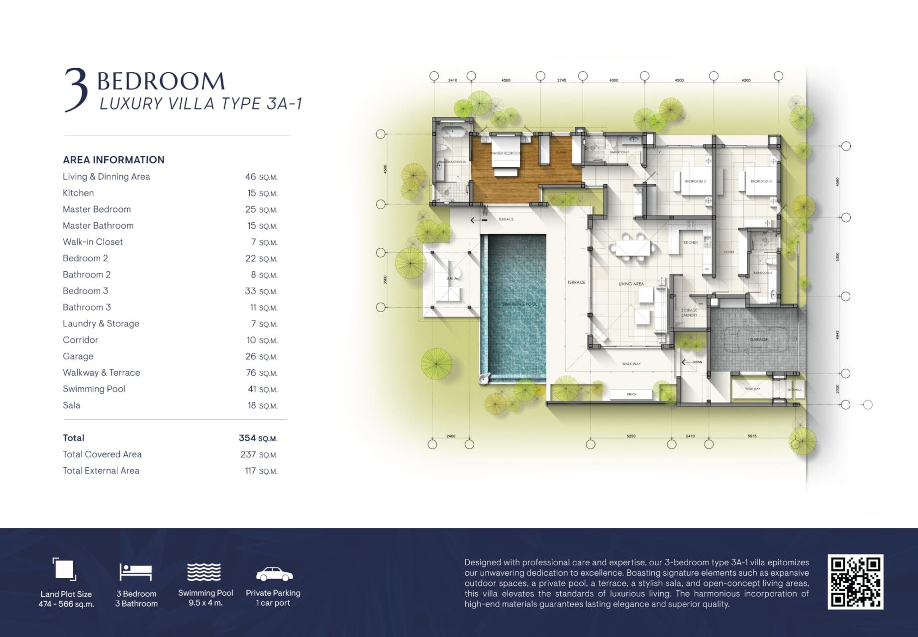 - Villa Type: 3-Bedroom Luxury Pool Villa (Type 3A-1)