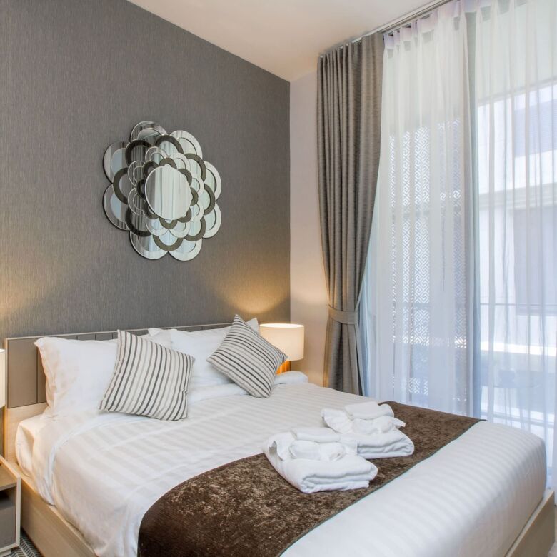 Designed in a Sino-Portuguese architectural style, this home features light-toned interiors, a fully equipped Western kitchen, and full furnishing throughout. The unit enjoys peaceful views of the garden and surrounding city, making it a calming retreat in one of Phuket’s most prestigious beachfront addresses.