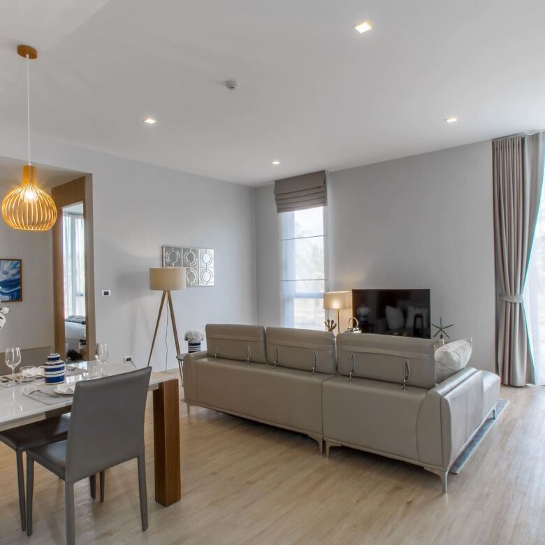 Located in the beachfront luxury development Baan Mai Khao, this elegant 2-bedroom, 2-bathroom condo offers a comfortable and stylish single-floor layout on the second floor, combining modern convenience with tropical tranquility. With 90 sqm of living space, this unit is ideal for residential use, holiday living, or long-term investment—just 15 minutes from Phuket International Airport.