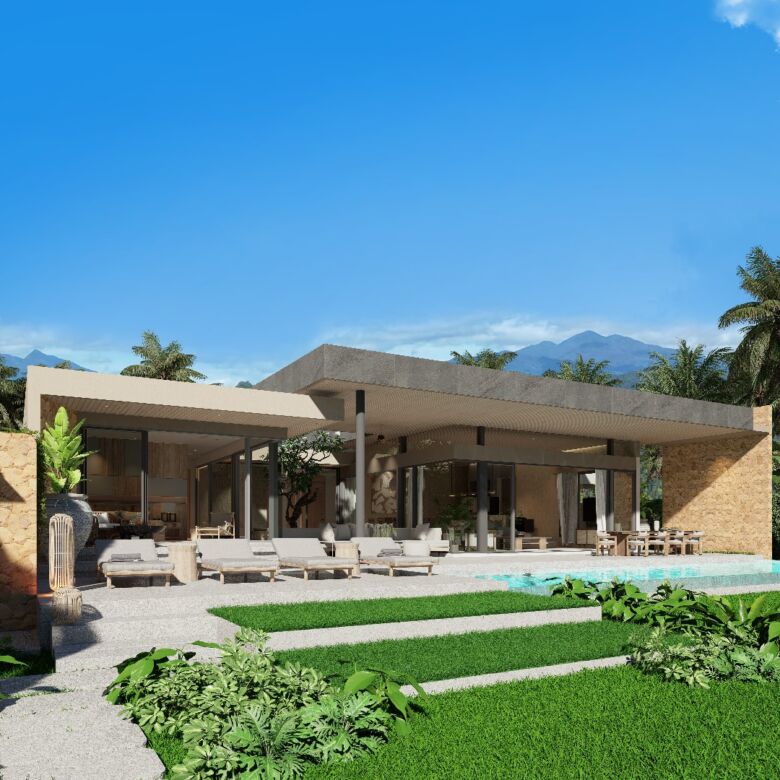 7 single-storey luxury beachfront pool villas, each with 4-Bedrooms, 6-Bathrooms, inside and outside living and dining areas, 2 kitchens, a utility room, maid’s quarters, 2 covered car parking spaces, a 14m swimming pool and 25m beach frontage. Plot sizes range from 1,565-1,839 sq.m and built up areas to all villas are 609.11 sq.m.