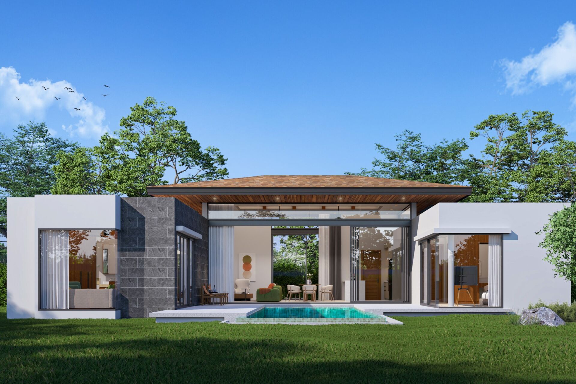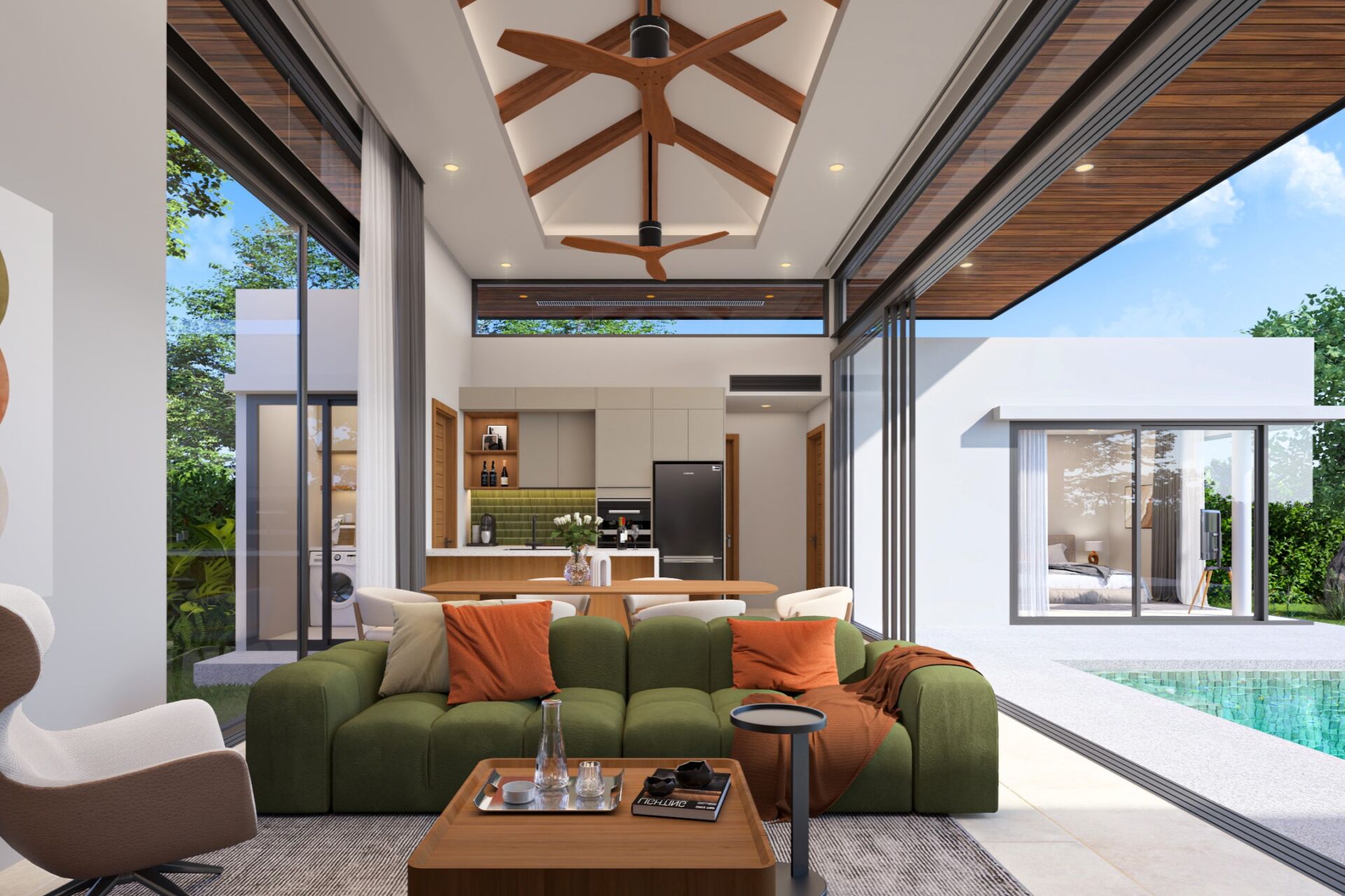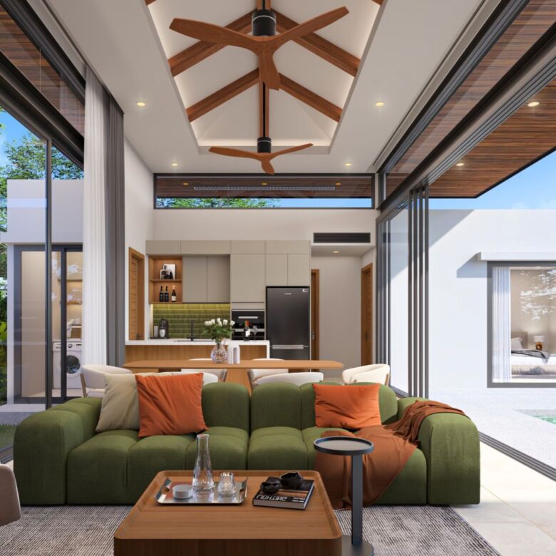Every villa is thoughtfully designed to embrace tropical living, with large sliding glass doors, open-plan interiors, and direct access to outdoor spaces.