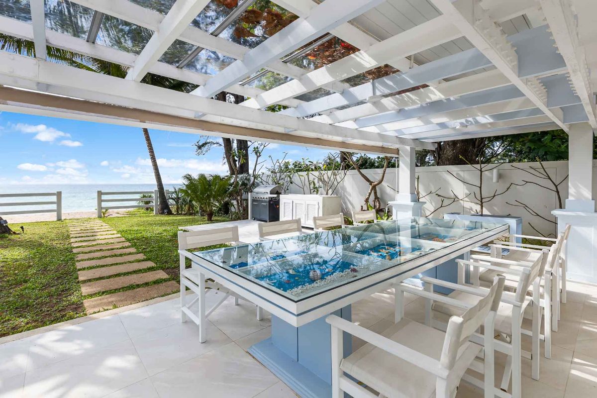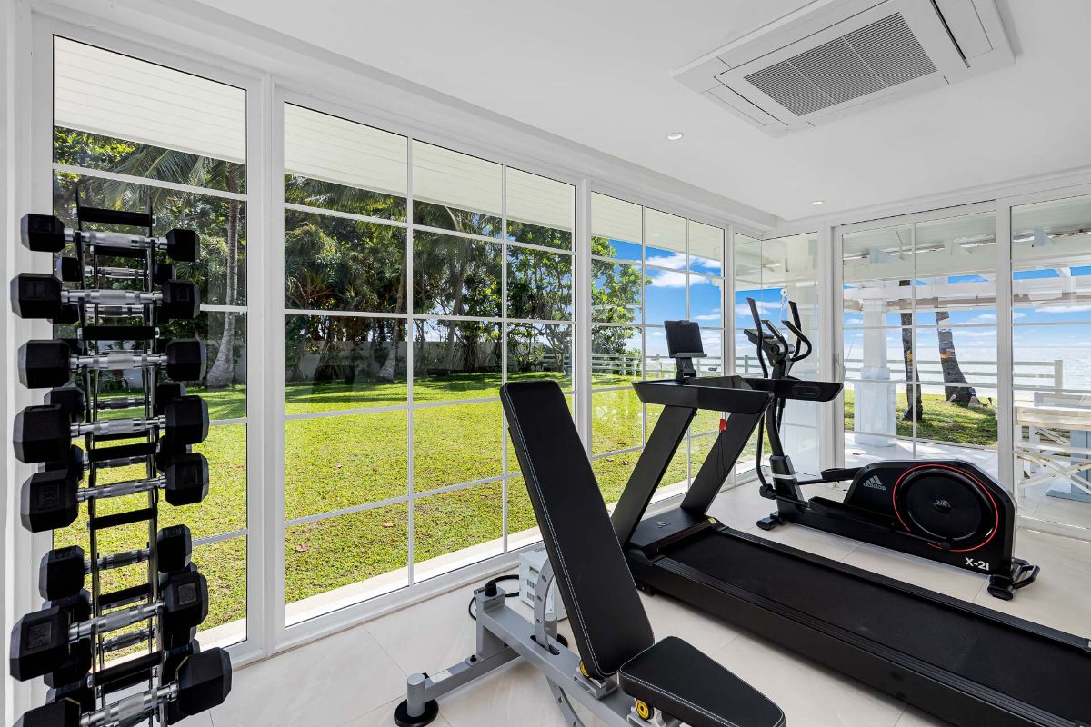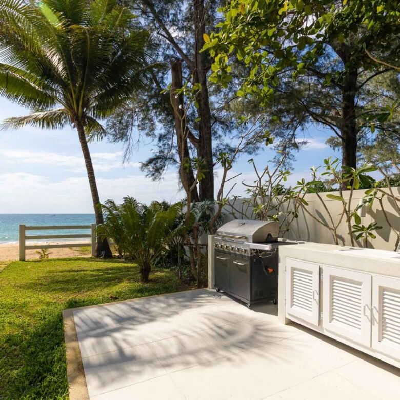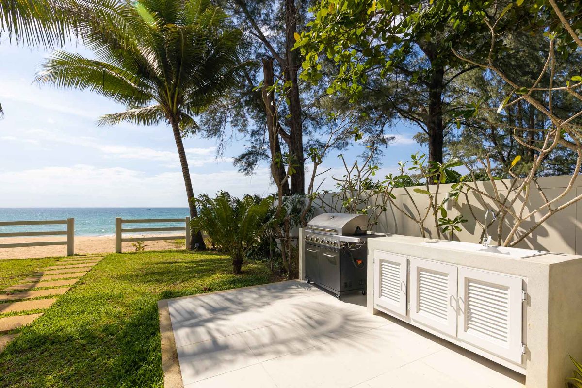 A generously sized, enclosed Sala, just steps from the beach, houses a fully equipped gym, a steam room, and a private massage area, ensuring all your wellness and fitness needs are met. Adjacent to the Sala, an alfresco dining area with a BBQ kitchen provides a delightful spot to savour culinary creations, just moments away from the serene shoreline.