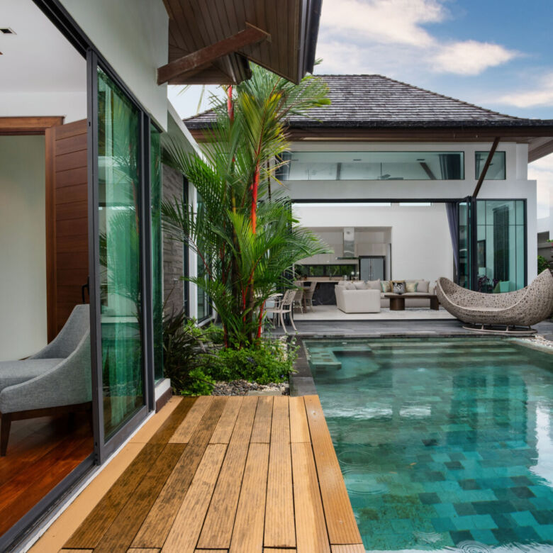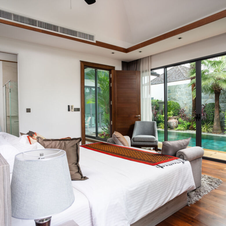 Experience refined lakefront living in this beautifully crafted 2-bedroom villa, perfectly positioned near Phuket’s top destinations including Laguna, Boat Avenue, and Blue Tree. This modern single-story villa is part of a secure, private gated expat community and offers breathtaking lake views, seamless indoor-outdoor living, and unmatched privacy.