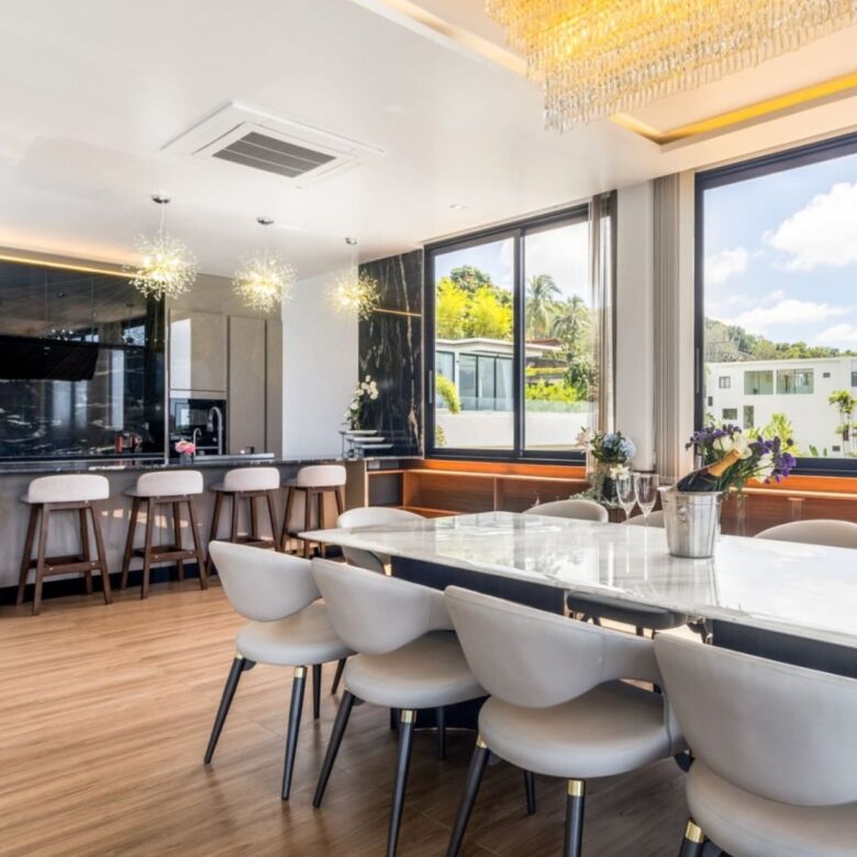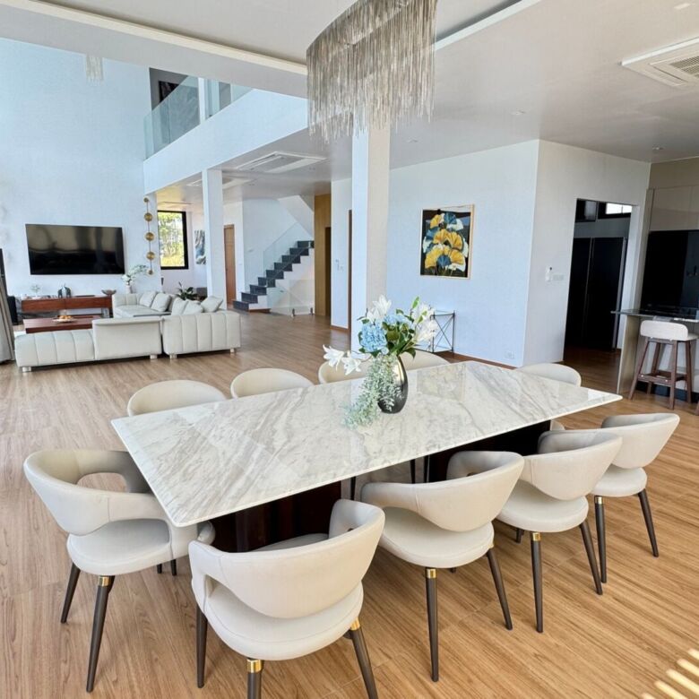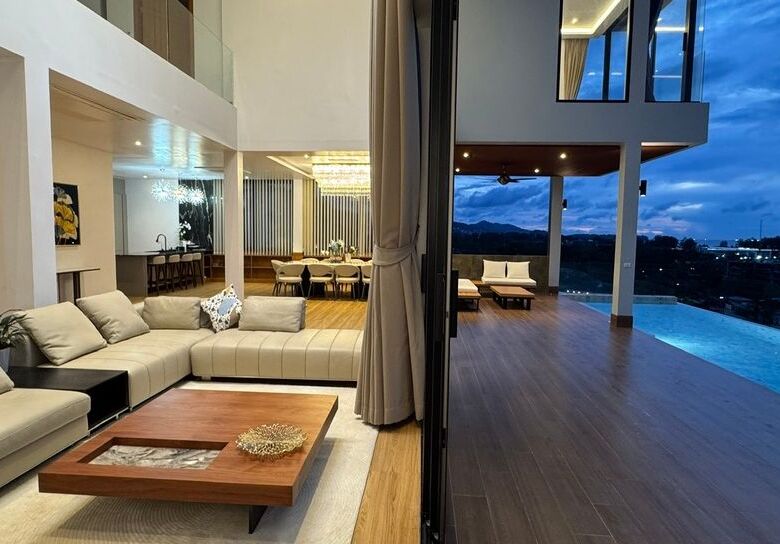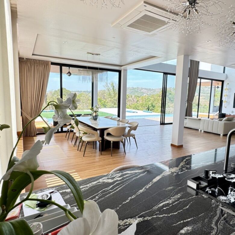 Located on a peaceful hillside near Layan Beach, this elegant 6-bedroom, 6-bathroom luxury pool villa offers refined living with expansive space, natural surroundings, and contemporary design. With a generous built-up area of 940 sqmset on a 414 sqm land plot, this fully furnished residence spans three levels, thoughtfully crafted for privacy, functionality, and breathtaking open views of the lush landscape and distant sea.