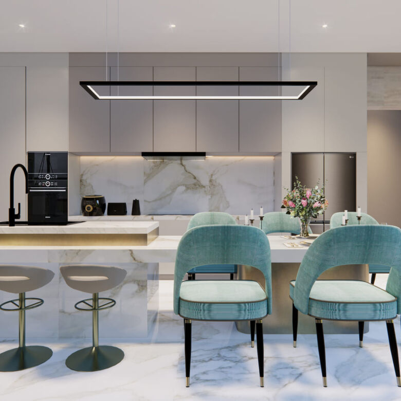 Larimar Villas is a luxurious retreat inspired by the tranquil hues of the sea and sky, much like the iconic Larimar stone. Designed to evoke coastal serenity, these elegant residences blend modern architecture with soothing blue and white tones, creating open, light-filled spaces that embody refined island living. The contemporary flat-roof design and spacious layouts offer a seamless connection between indoor and outdoor areas, ensuring an ambiance of peace and relaxation.