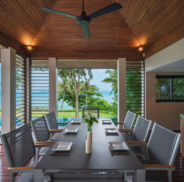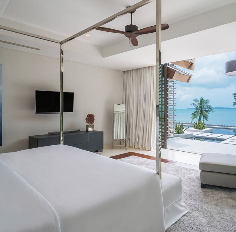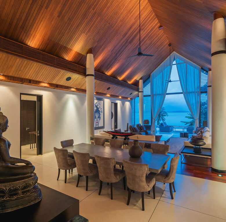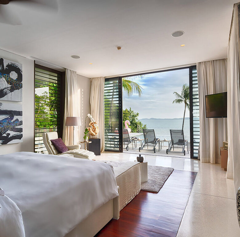 Experience refined tropical living at Villa Naam Sawan, an exquisite 4-bedroom oceanview residence located within the prestigious Cape Residences on Cape Yamu, Phuket. Designed by world-renowned architectural design team, Philippe Starck and Jean-Michel Gathy, this stunning villa offers a sophisticated blend of traditional Thai design and contemporary luxury, set against the serene backdrop of Phang Nga Bay.