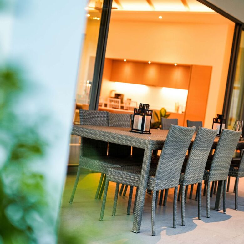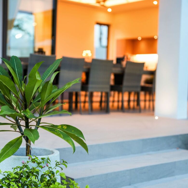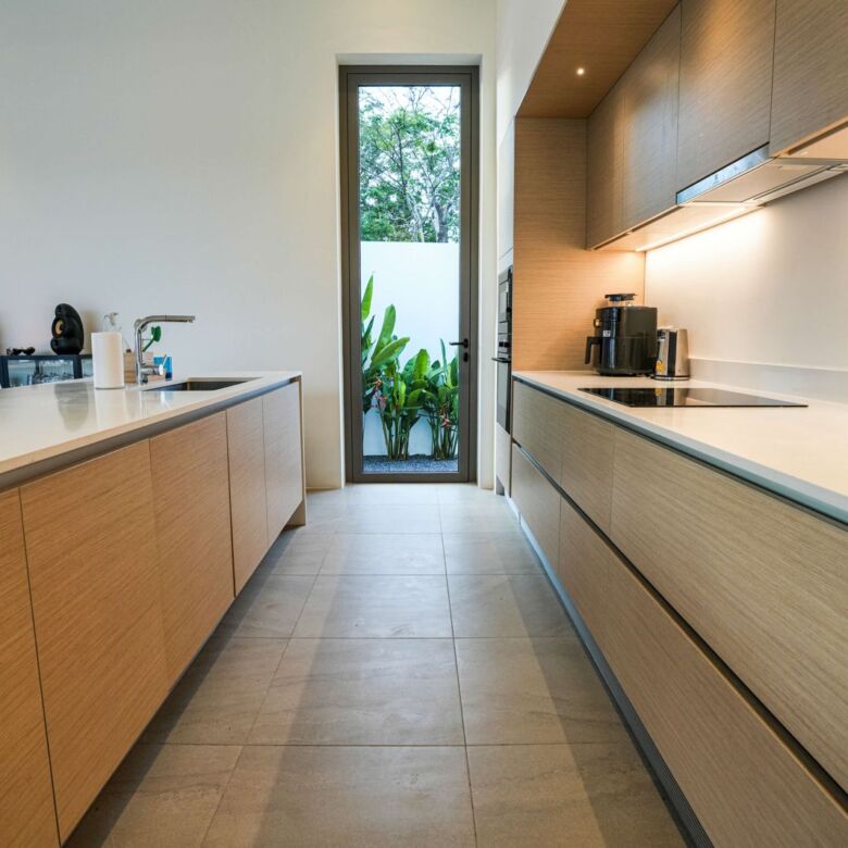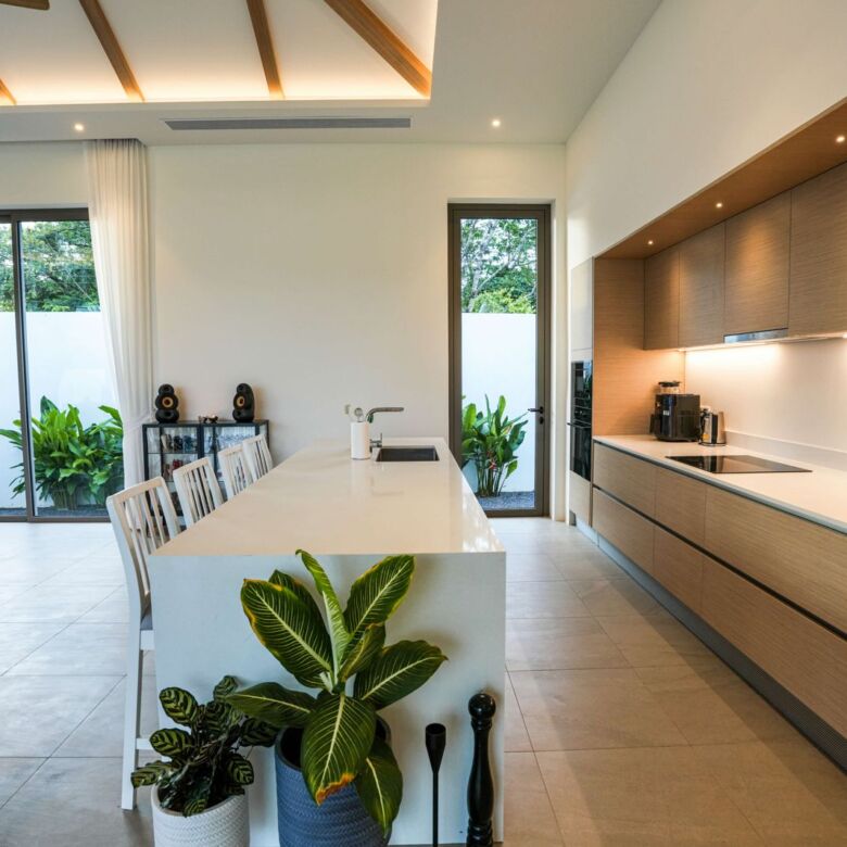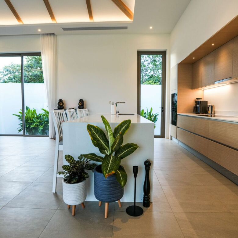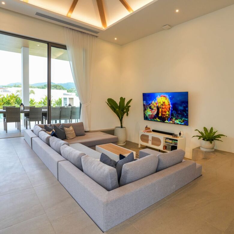 This architectural gem harmoniously blends contemporary design with tropical elements to create an atmosphere of refined elegance. Floor-to-ceiling windows throughout the villa flood the interior with natural light while showcasing the meticulously landscaped gardens beyond.