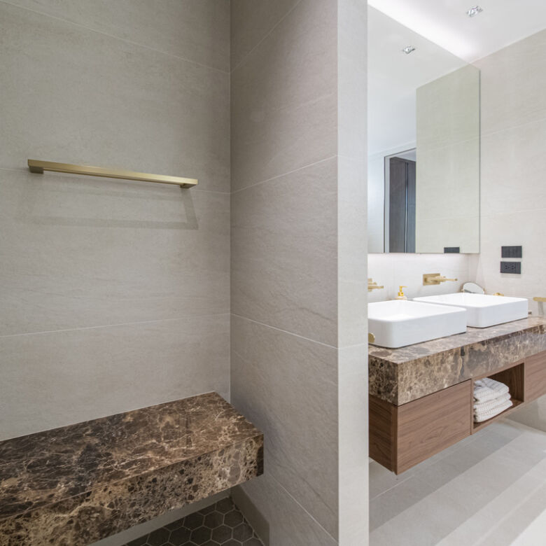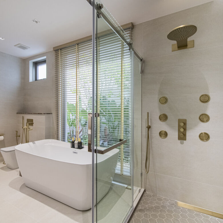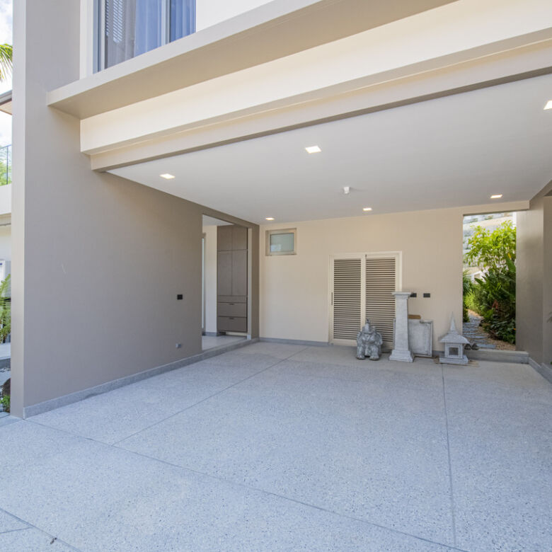 Step outside to enjoy your private swimming pool with sun deck and outdoor shower, or relax on your private terrace. This villa also includes built-in furniture, storage areas, a laundry room, and covered parking for 2 cars.