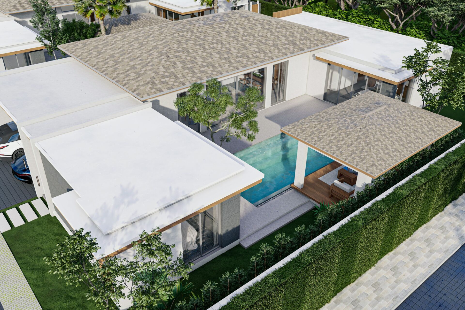 Welcome to Mouana Breeze Mai Khao, an exclusive luxury pool villa development crafted for those who desire privacy, sophistication, and a peaceful tropical lifestyle. Located just moments from the pristine sands of Mai Khao Beach, the project seamlessly blends modern architecture with resort‑style living, creating the ideal sanctuary for relaxation, family living, or investment.