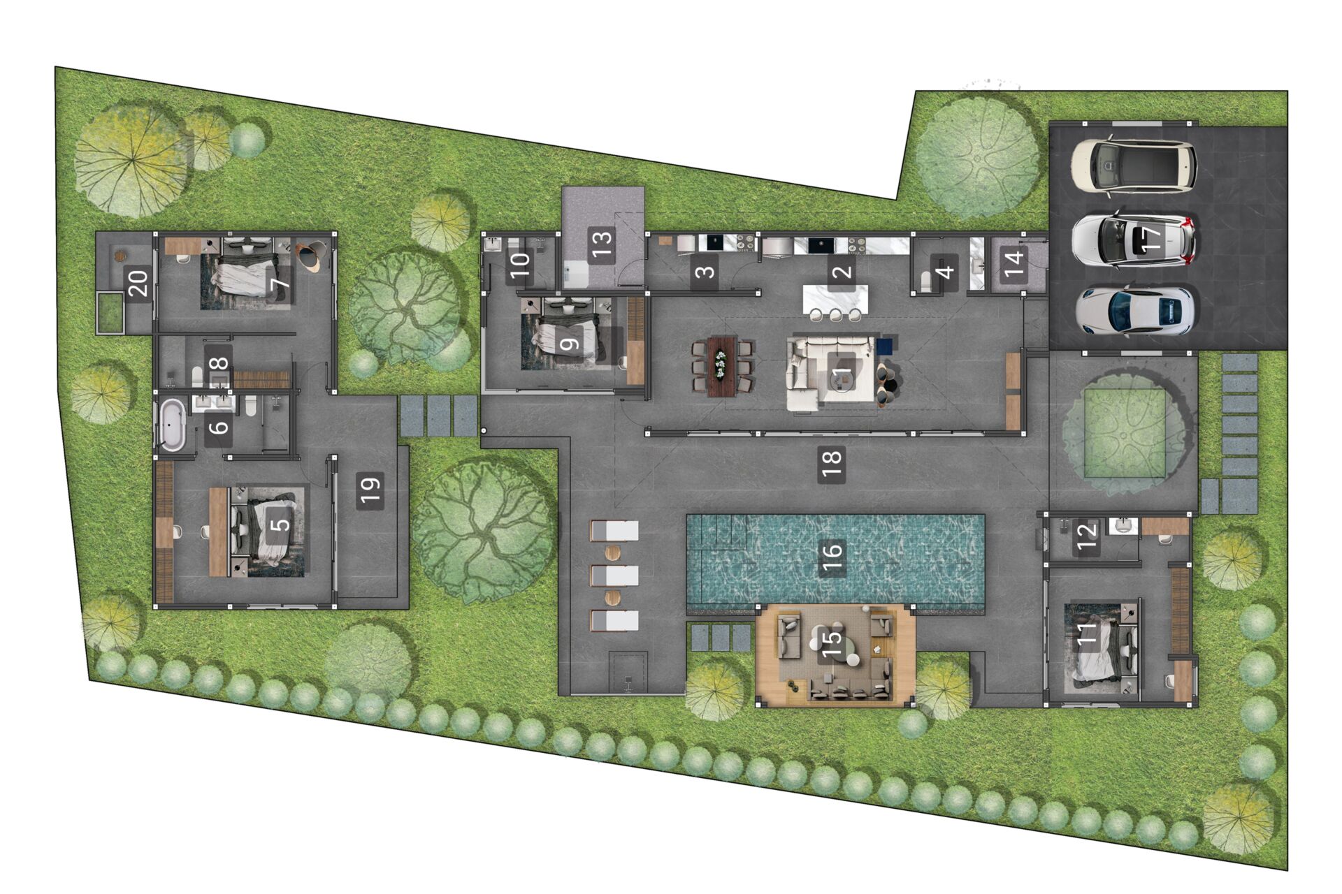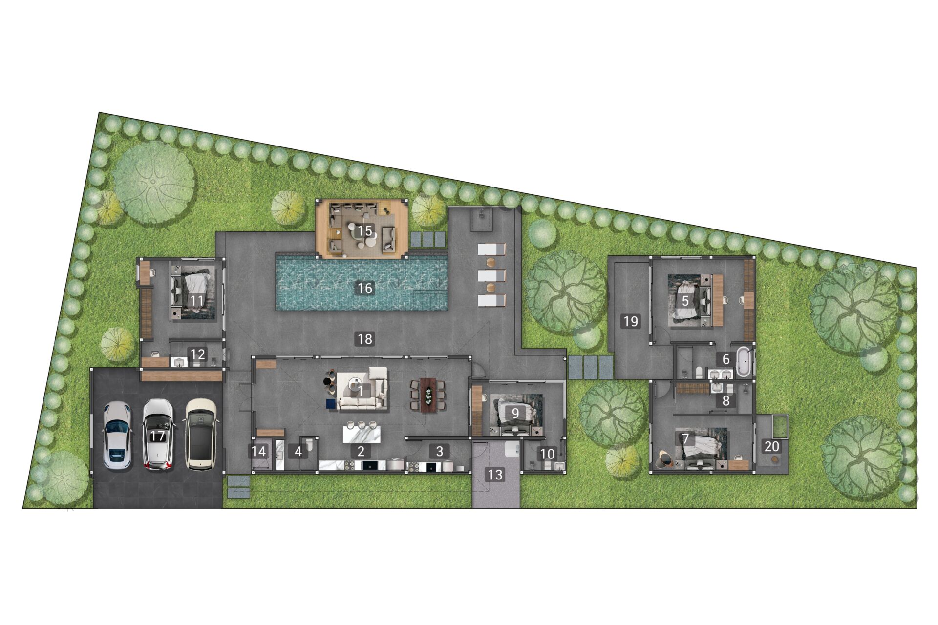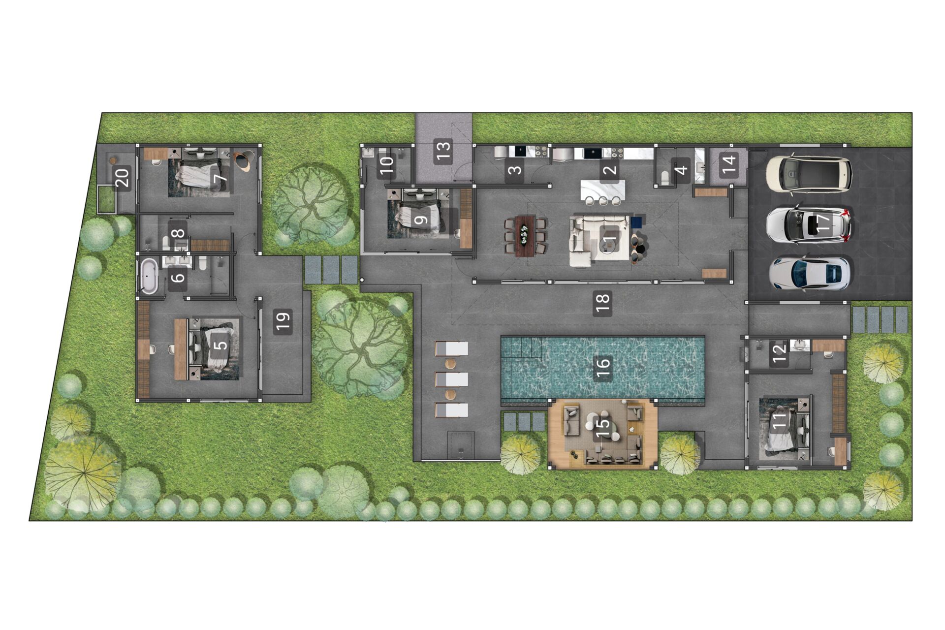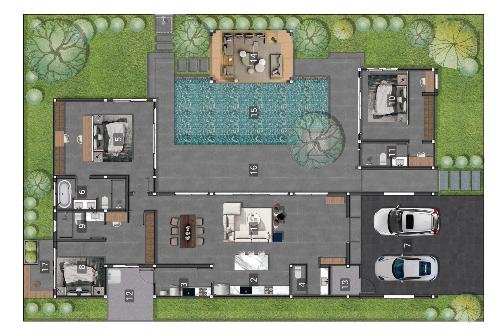Mouana Breeze Mai Khao spans 13‑6‑71 rai (23,484 sqm) and comprises 27 premium villas, each designed with high‑quality materials and elegant aesthetics. The villas feature generous living areas, high ceilings, expansive glass façades, and private swimming pools surrounded by beautifully landscaped gardens.