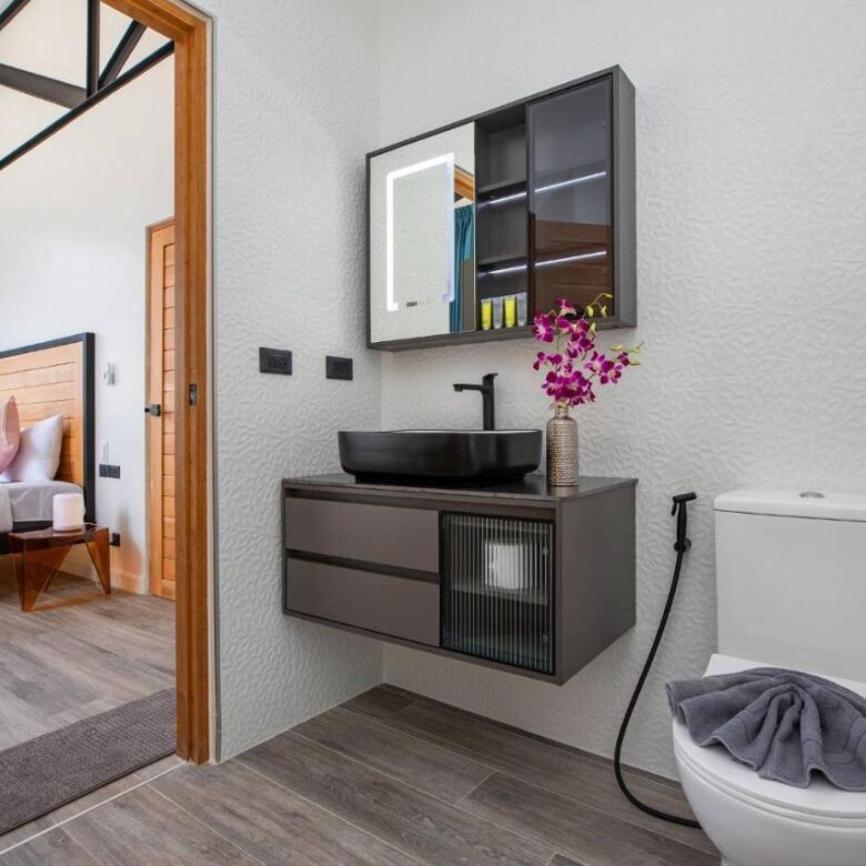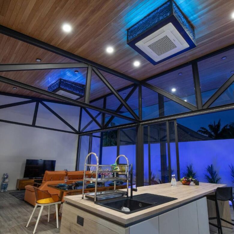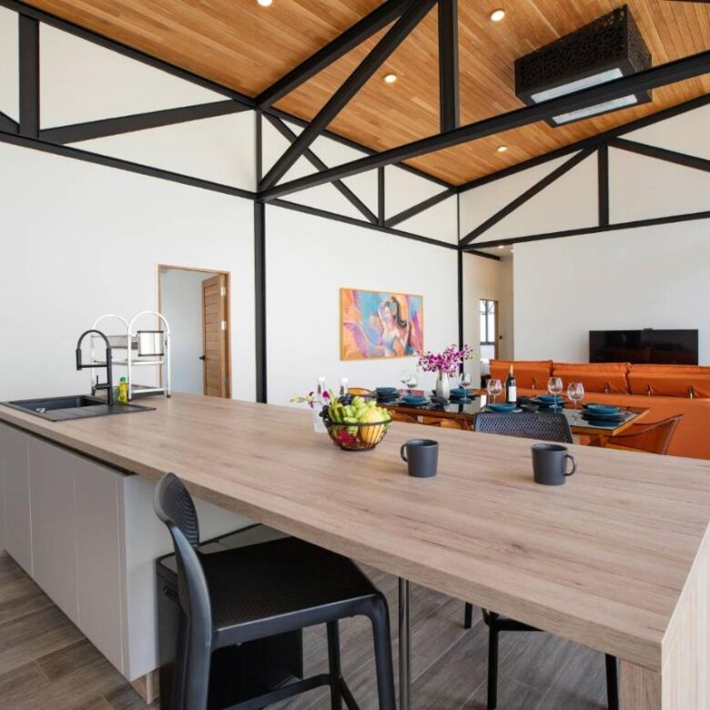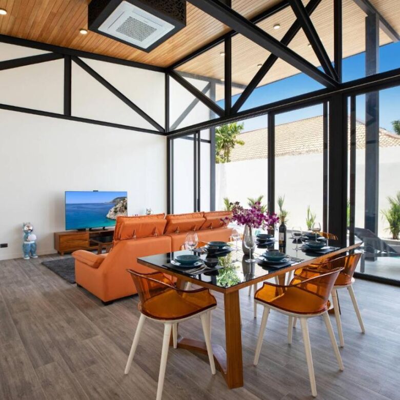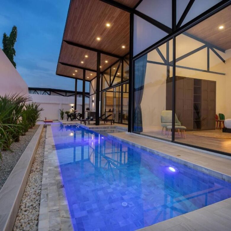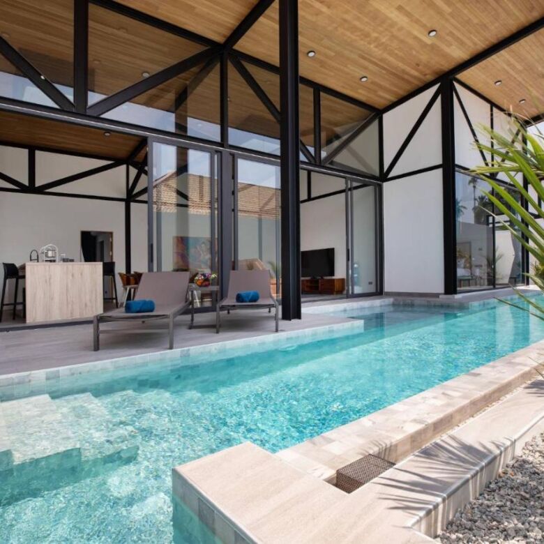 This brand-new 3-bedroom pool villa at Sunset Garden Phase 3 offers a stylish blend of industrial modern design and comfortable tropical living, set in a peaceful residential area of Rawai. With high ceilings throughout, this single-story home features a bright open-plan layout, a large terrace with direct pool access, and thoughtfully designed indoor-outdoor living spaces.