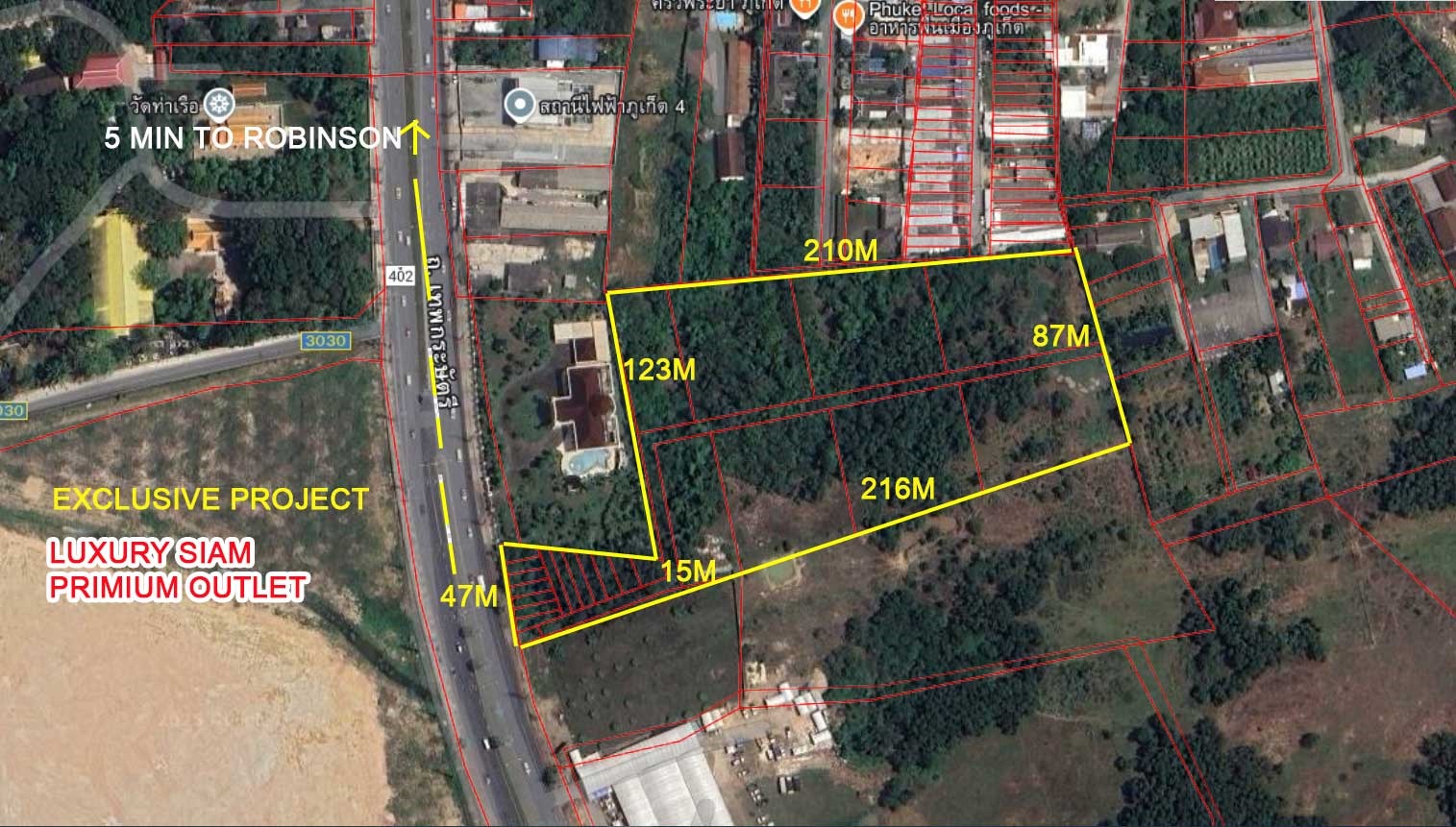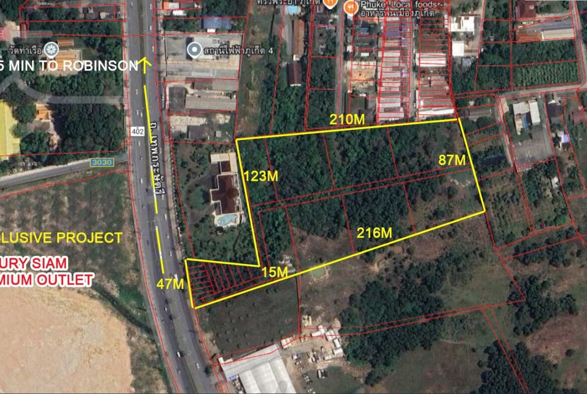 Direct frontage on Phuket’s bustling Highway 402 provides high-traffic exposure ideal for commercial or residential projects. Positioned opposite Synthesis Ark, featuring luxury condos, offices, hotels, international schools, wellness centers, and retail, this land benefits from immediate adjacency to one of the island’s most ambitious developments. Proximity to Boat Lagoon, Royal Phuket Marina, and international schools enhances its appeal for high-demand ventures.
