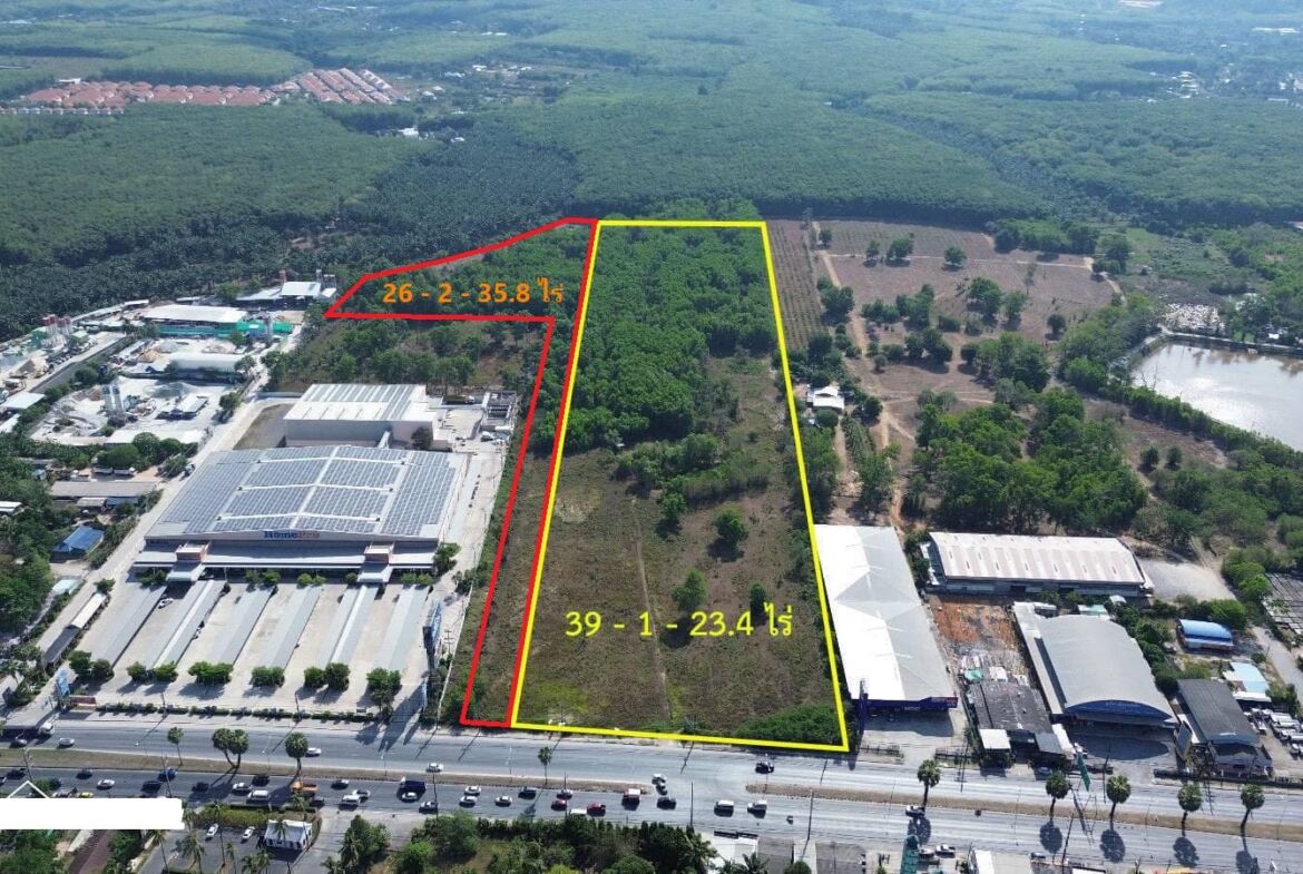 Prime Commercial Land for Sale in Thalang – 65-3-59.2 Rai with Chanote Title – just 10MB/rai