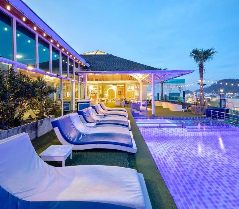 - Facilities include rooftop swimming pool, spa, fitness center, restaurant, and meeting rooms