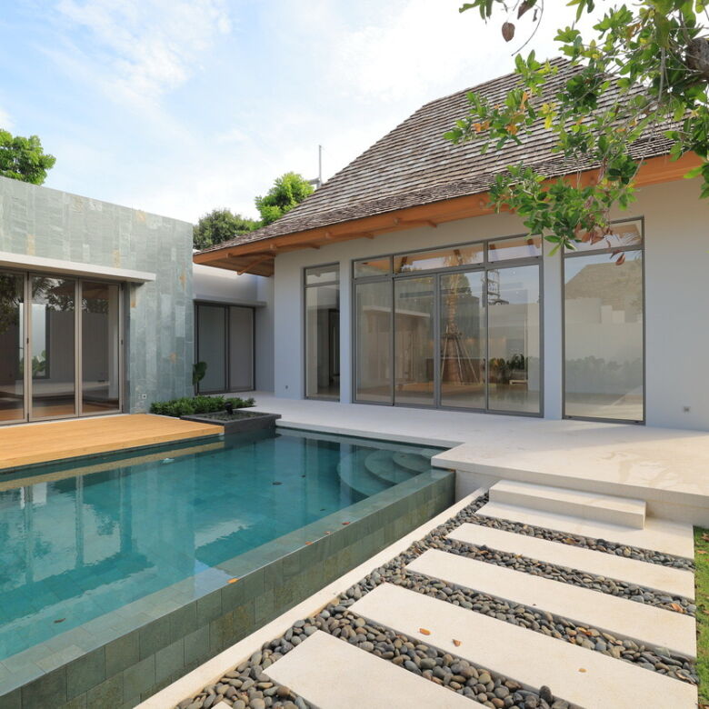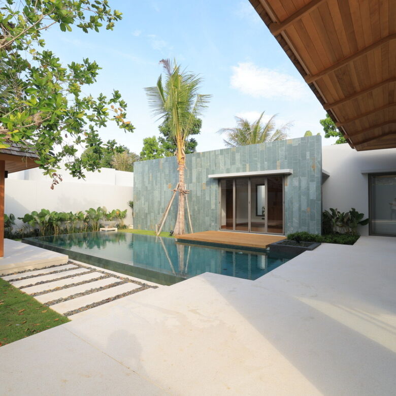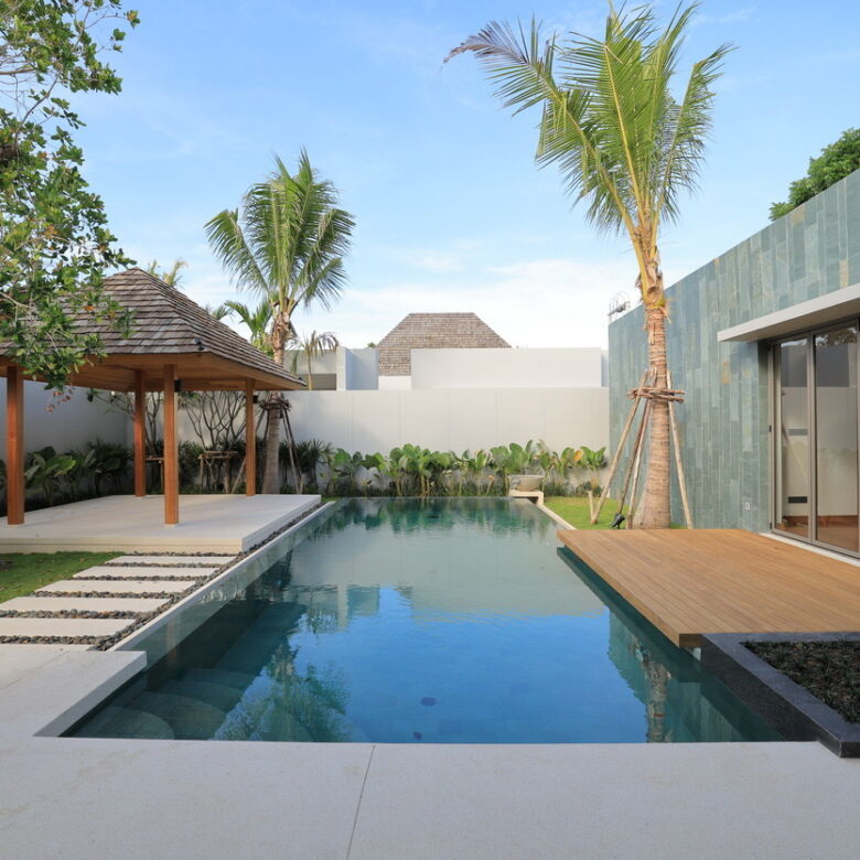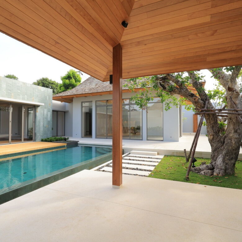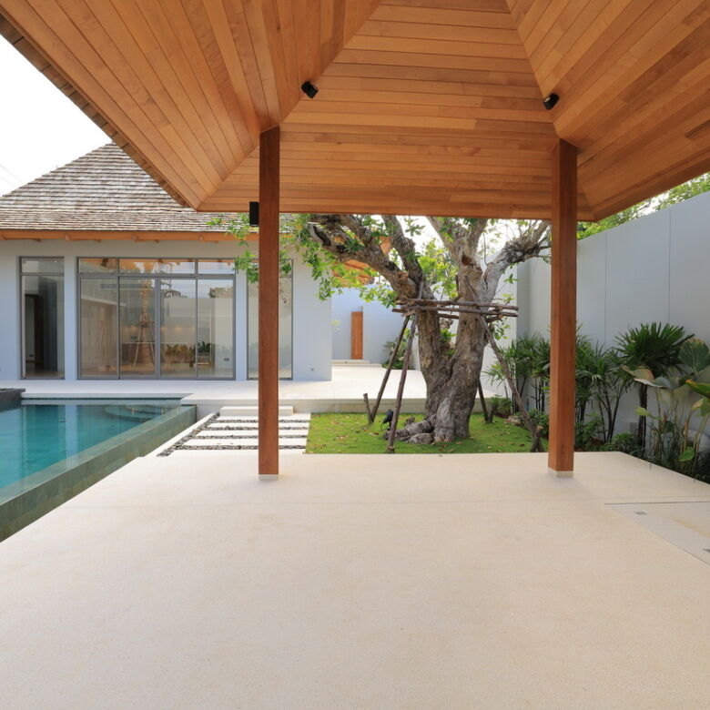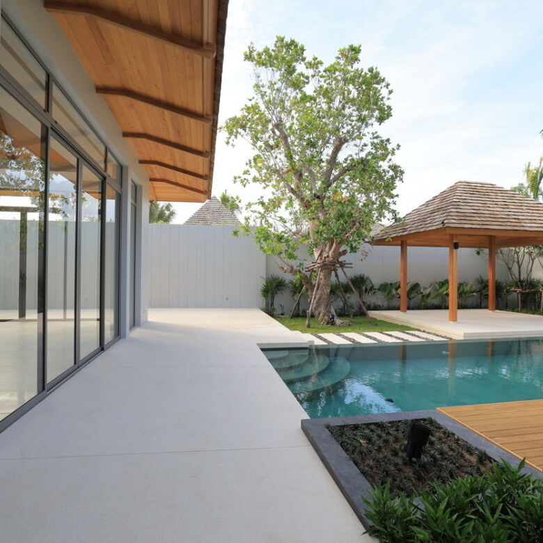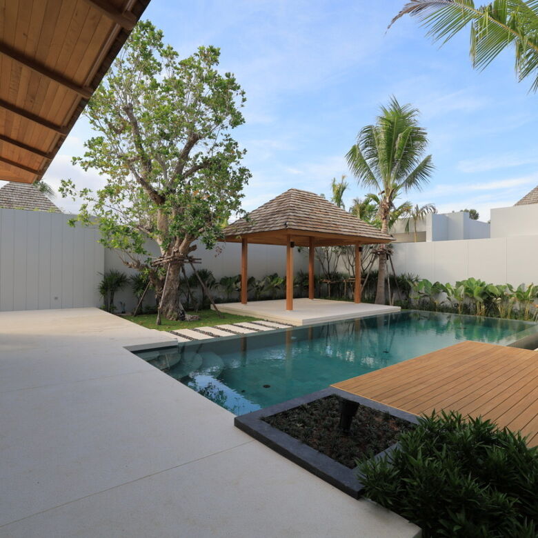 The villa is thoughtfully designed in a U-shape around a large private swimming pool (11.5m x 4m) with a generous poolside Sala and sun terrace. Ideal for outdoor dining, entertaining, or just relaxing in nature.