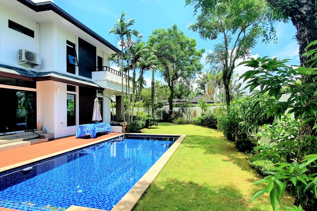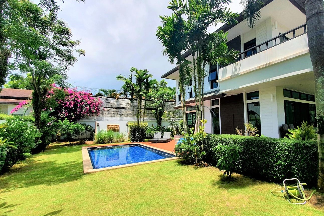 Nestled in one of Phuket’s most prestigious residential enclaves, this beautifully renovated 4-bedroom pool villa at Royal Estate Tanode offers an exceptional blend of modern comfort, tropical elegance, and prime location. Situated in the highly sought-after Layan / Laguna area, the property is ideal for long-term residents seeking a peaceful yet well-connected lifestyle.