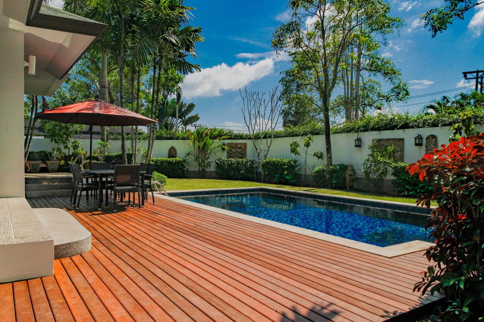 Whether for relaxing by the pool or hosting gatherings, the outdoor space offers a perfect retreat within your own home.