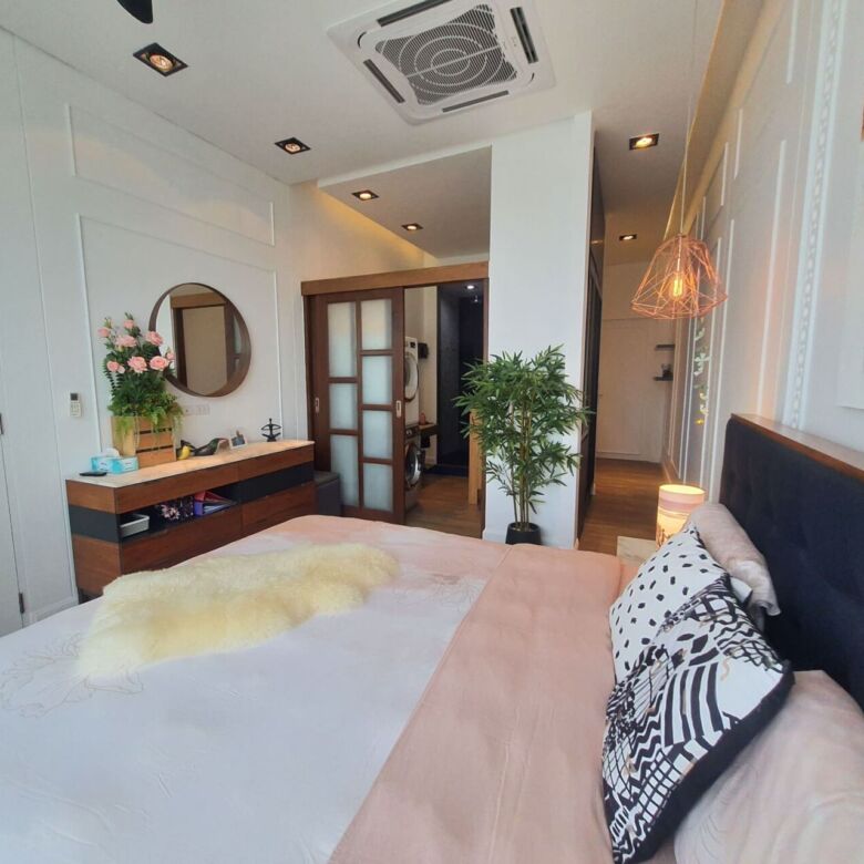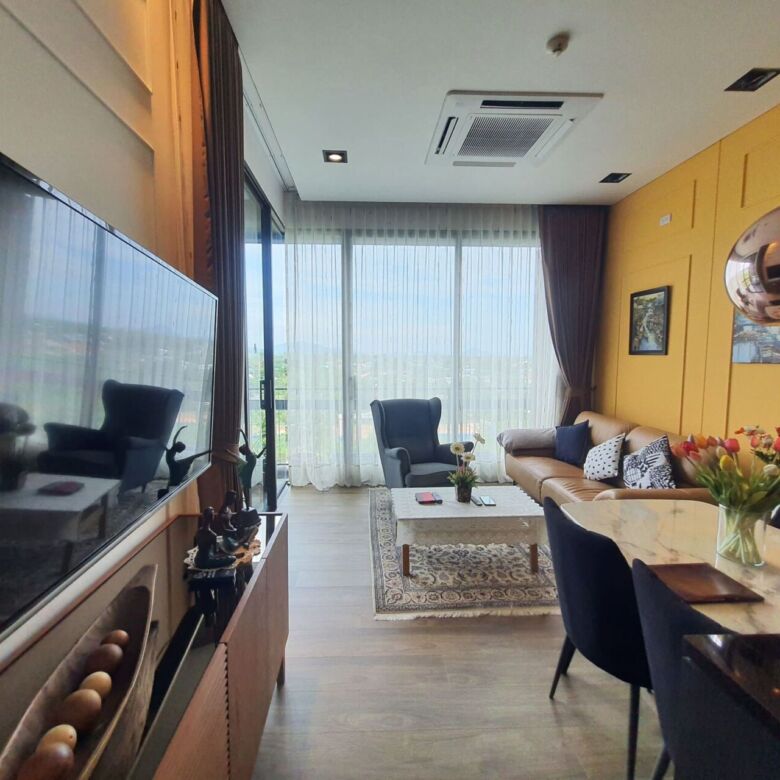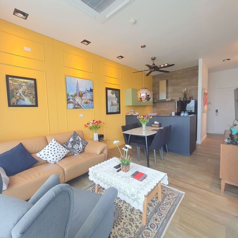 This well-designed 2-bedroom, 2-bathroom condo is located on the top floor of the sought-after Saturdays Residence in Rawai. Offering 86.84 sqm of total space, including a spacious 74.84 sqm interior and 12 sqm private balcony, this fully furnished unit enjoys sea views and peaceful surroundings. It’s an ideal choice for those seeking a relaxing home near the beach or a smart rental investment.