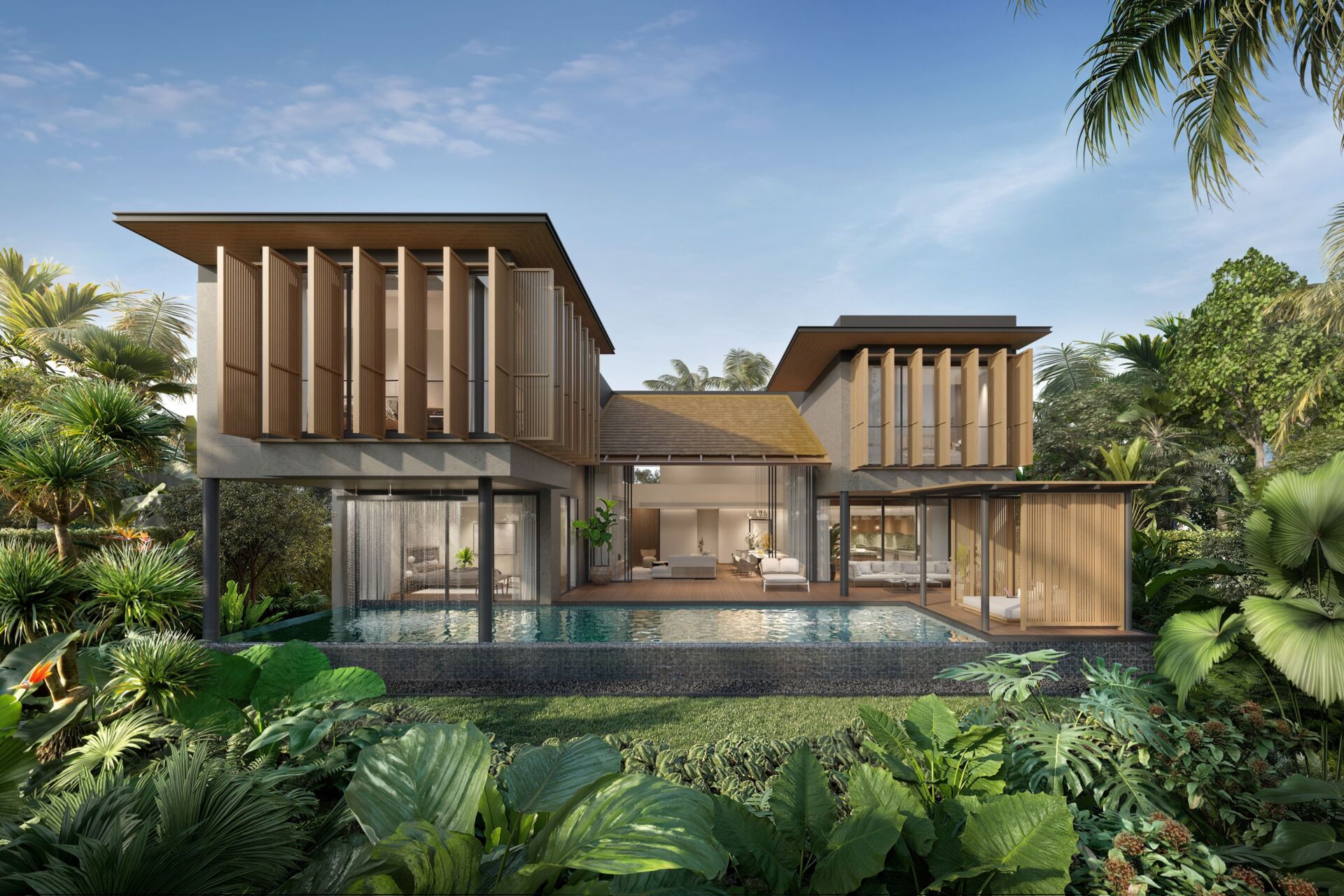 - Clean, minimalist tropical architecture