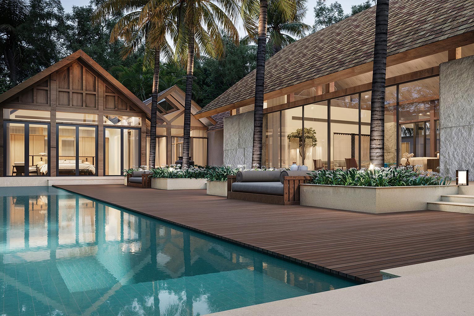 SOI8 Phuket is defined by its bespoke architecture, where no two villas are identical. The design blends tropical modernism with timeless craftsmanship: