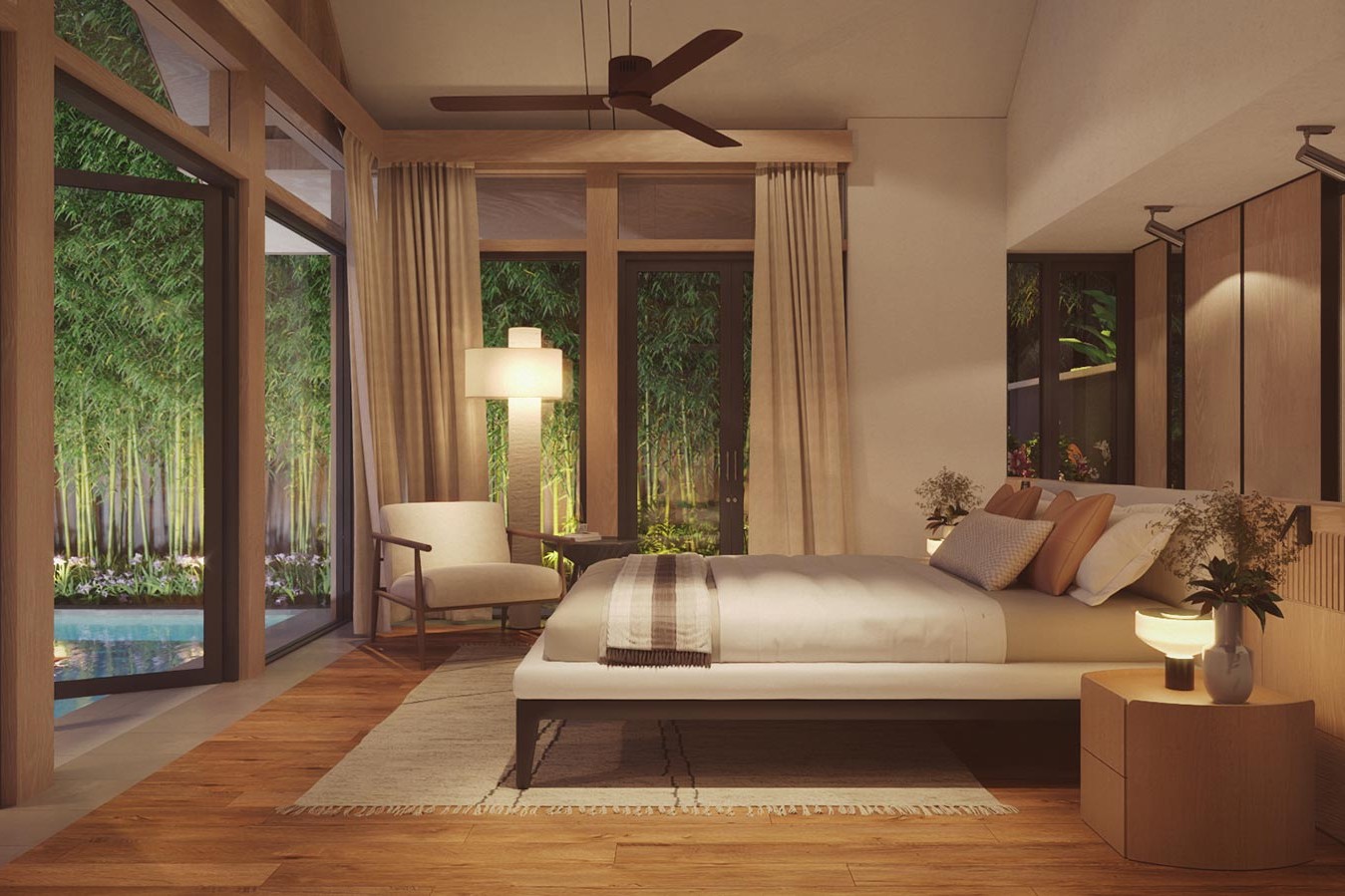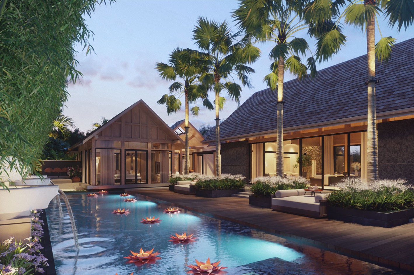 - Luxurious master suites with direct pool or courtyard access