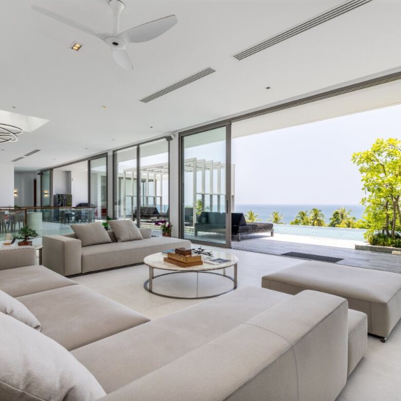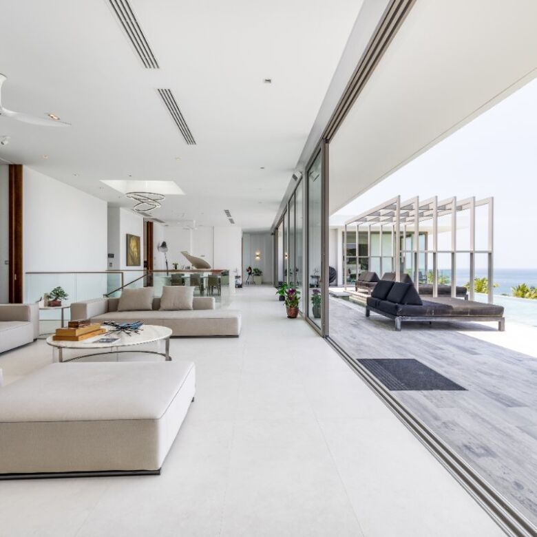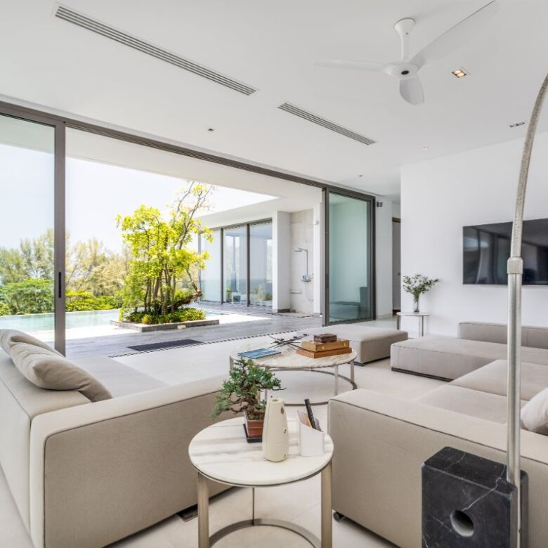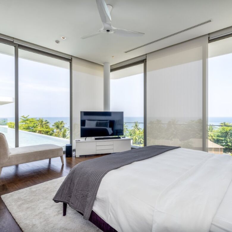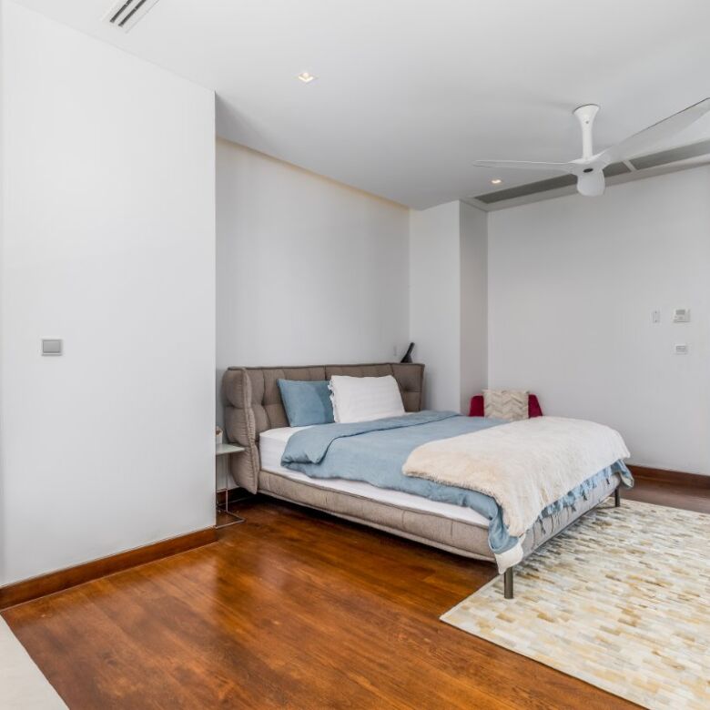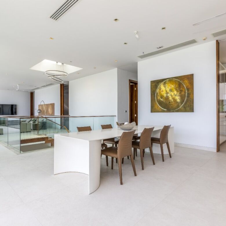 Spanning an impressive 735 square meters of meticulously curated living space, this four-bedroom penthouse is a masterclass in open-concept design. Floor-to-ceiling glass panels invite sweeping vistas of the Andaman Sea into every principal room, infusing the residence with natural light and a constant connection to the ocean beyond.