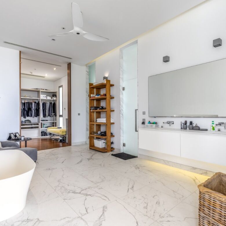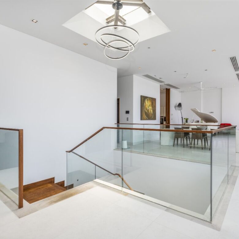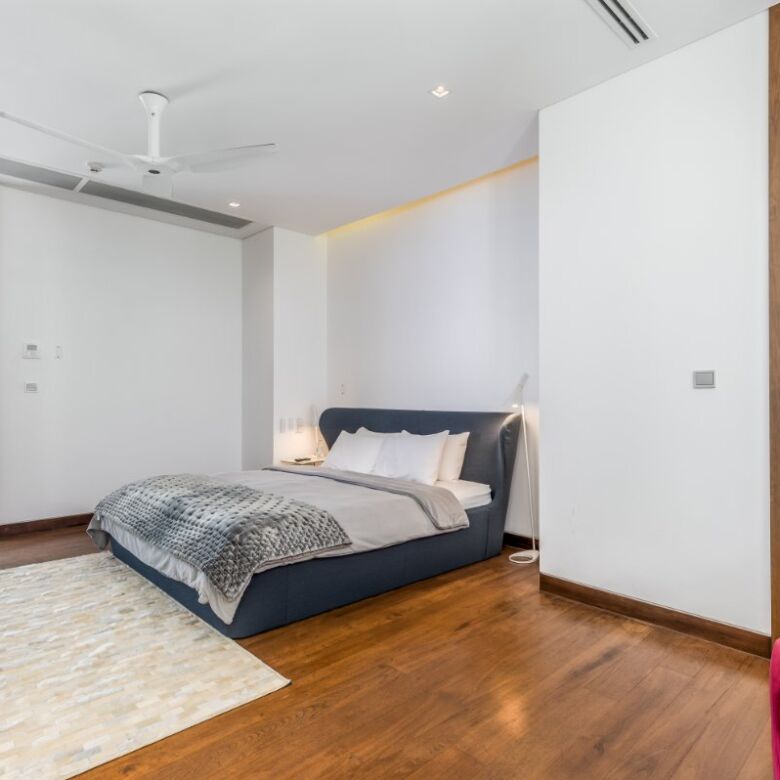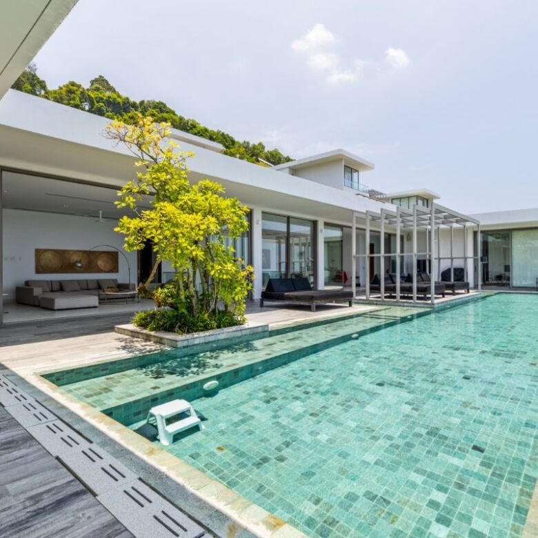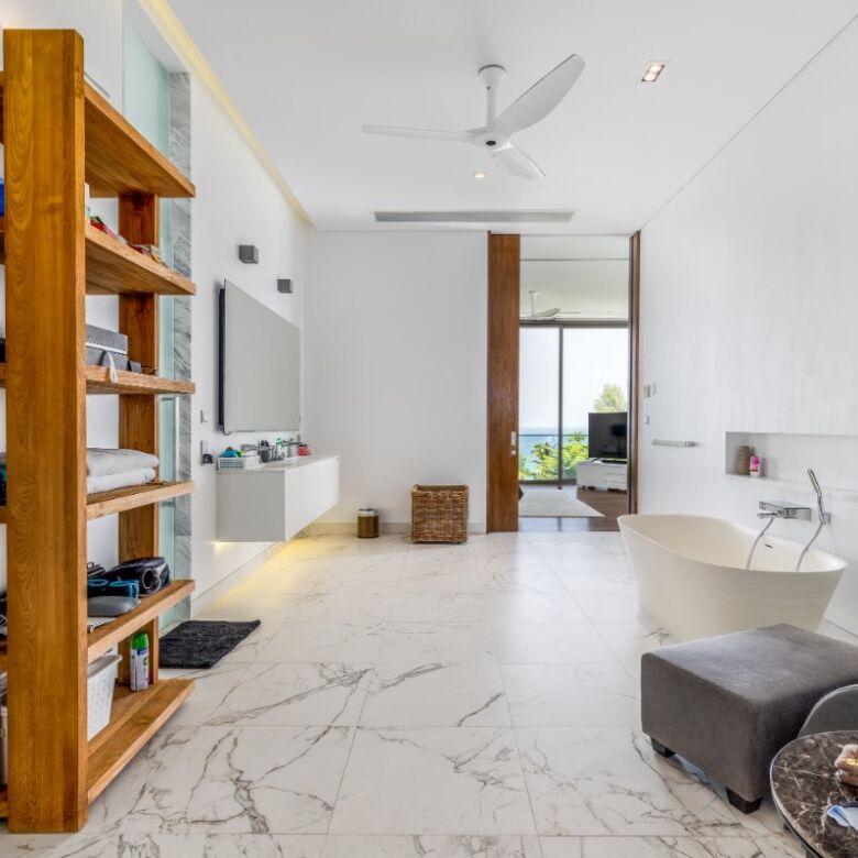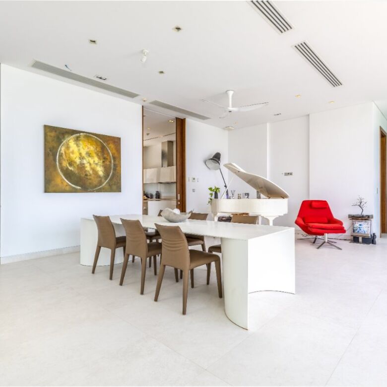 Spanning an impressive 735 square meters of meticulously curated living space, this four-bedroom penthouse is a masterclass in open-concept design. Floor-to-ceiling glass panels invite sweeping vistas of the Andaman Sea into every principal room, infusing the residence with natural light and a constant connection to the ocean beyond.