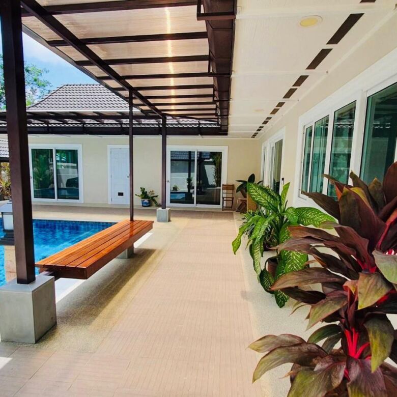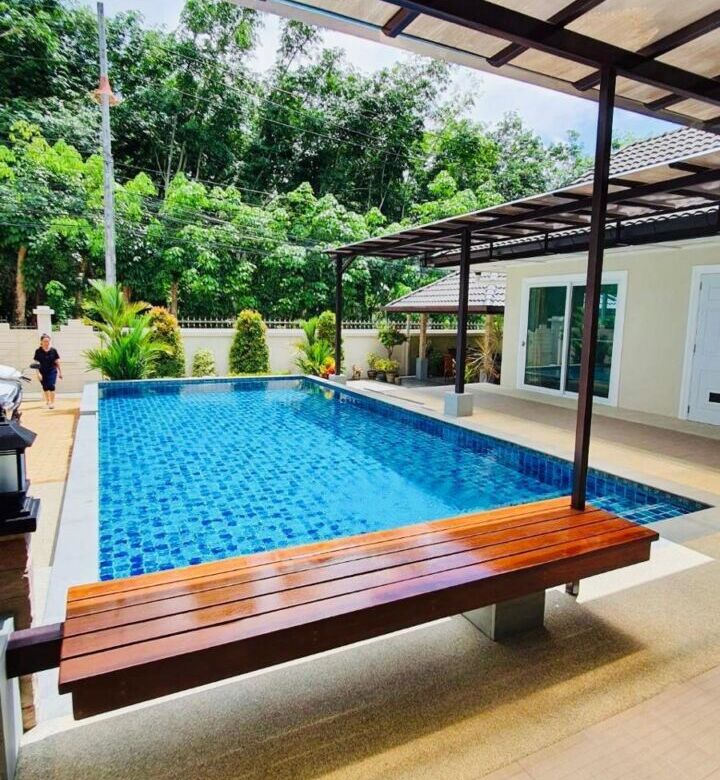 Located in a peaceful residential area of Rawai, this charming 3-bedroom, 3.5-bathroom pool villa offers a well-balanced blend of comfort, privacy, and outdoor living—all on a single level. Set on a generous 532 sqm land plot, the villa features a thoughtful L-shaped layout that wraps around the private pool and tropical garden, creating a seamless indoor-outdoor lifestyle ideal for family living or retirement.