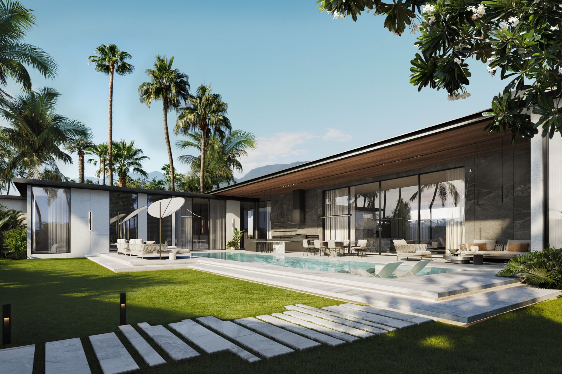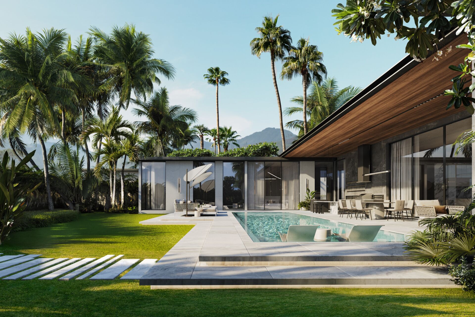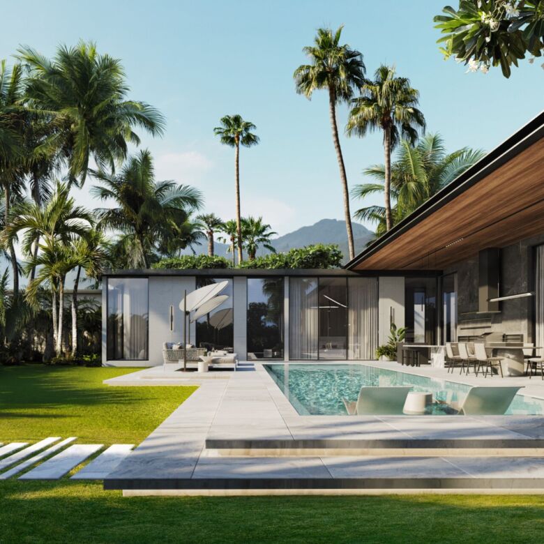 The project is designed by the renowned Spanish architectural firm Plus Render, delivering a sophisticated blend of modern aesthetics and tropical functionality.