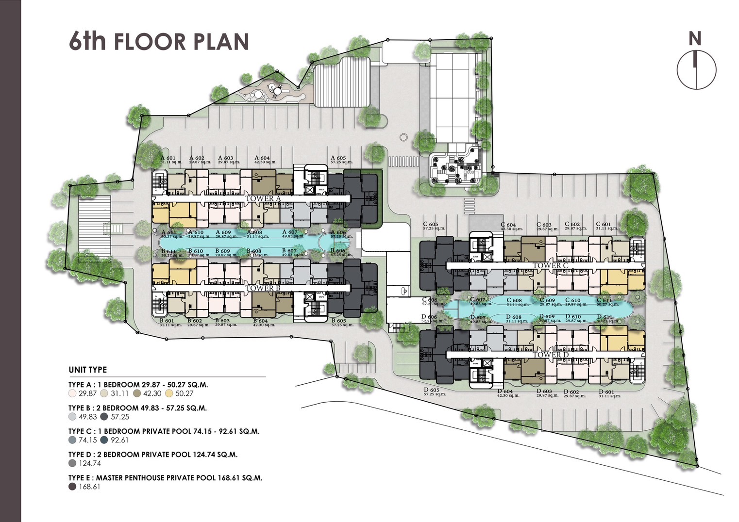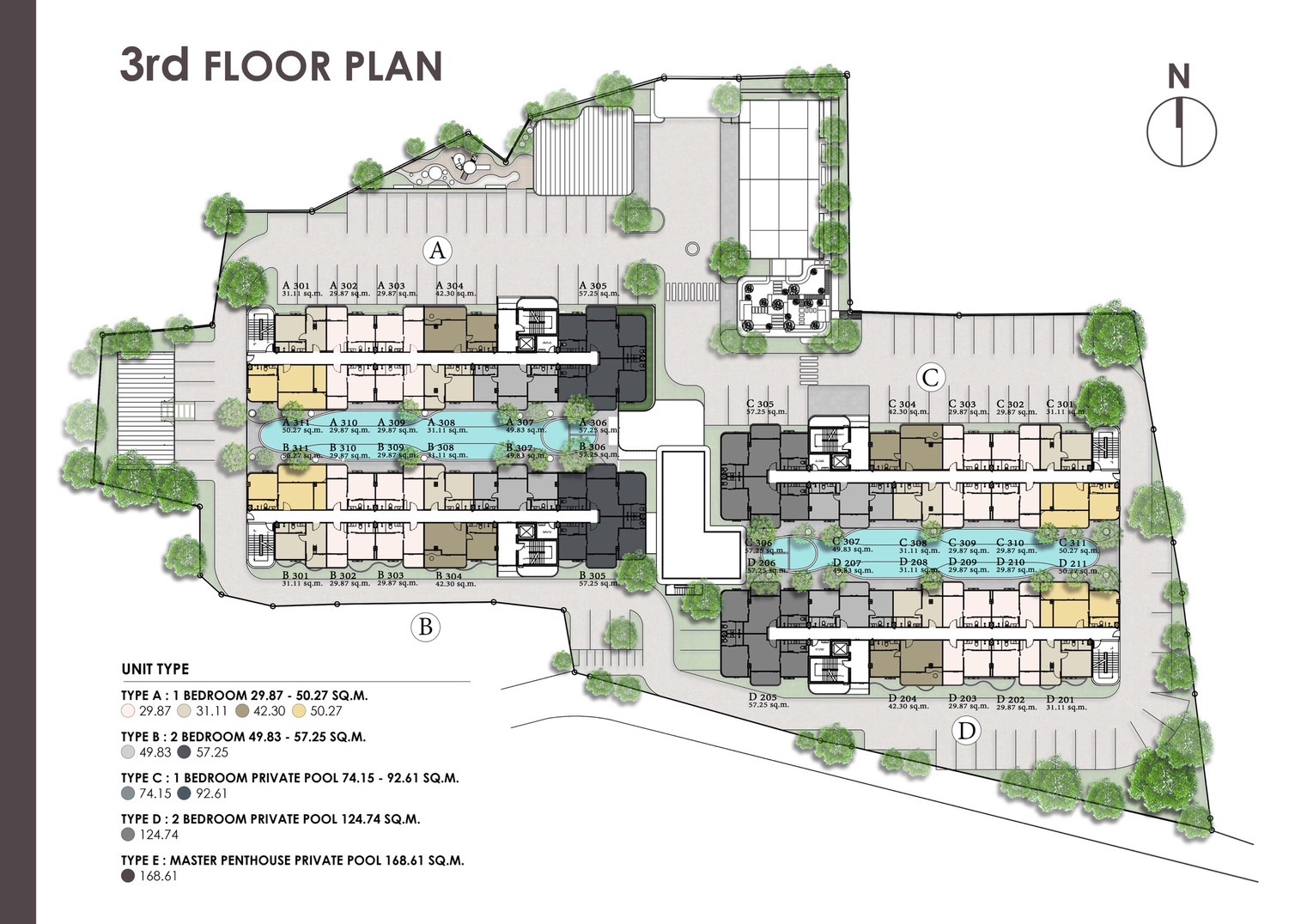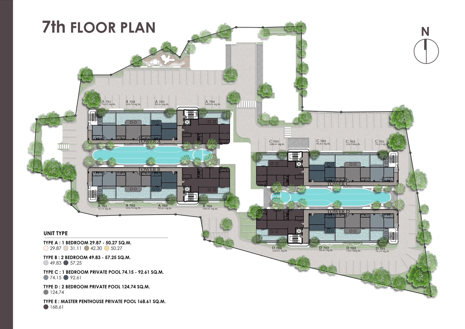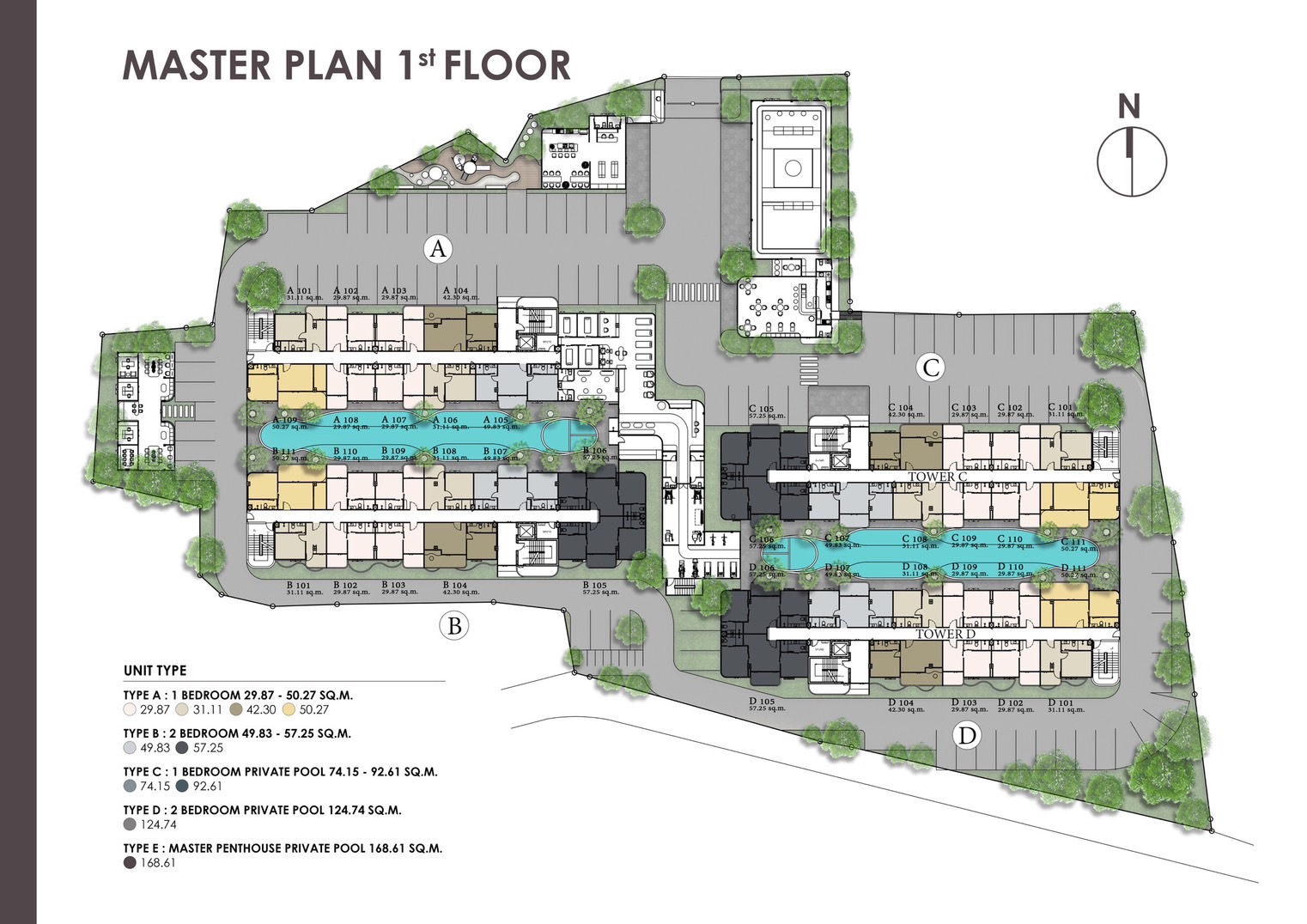 - Unit sizes ranging from 29.87 to 168.61 square meters