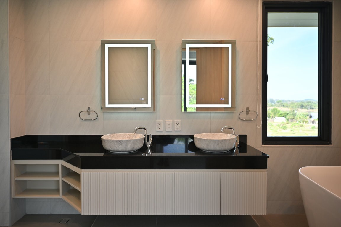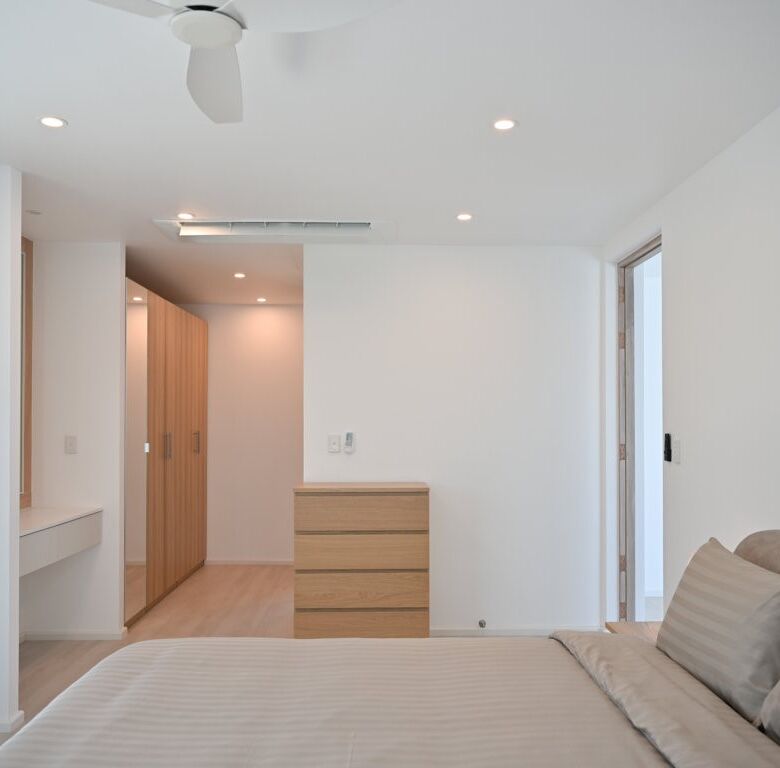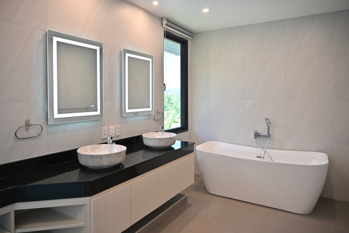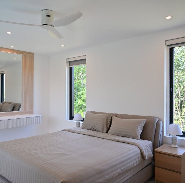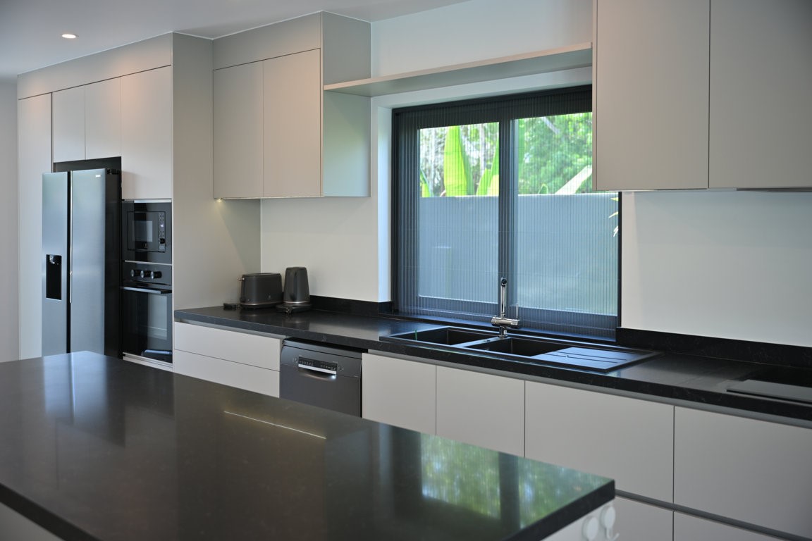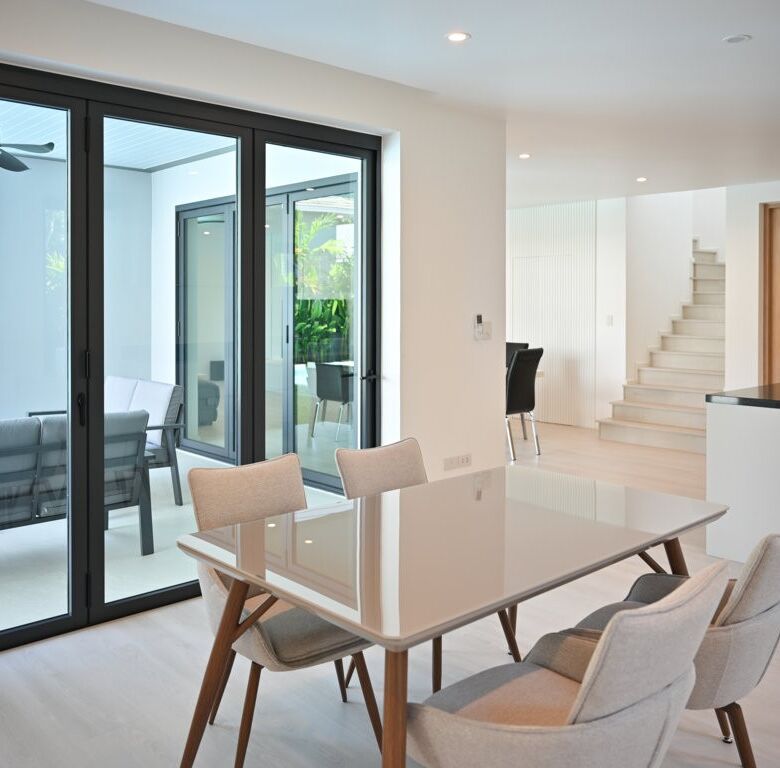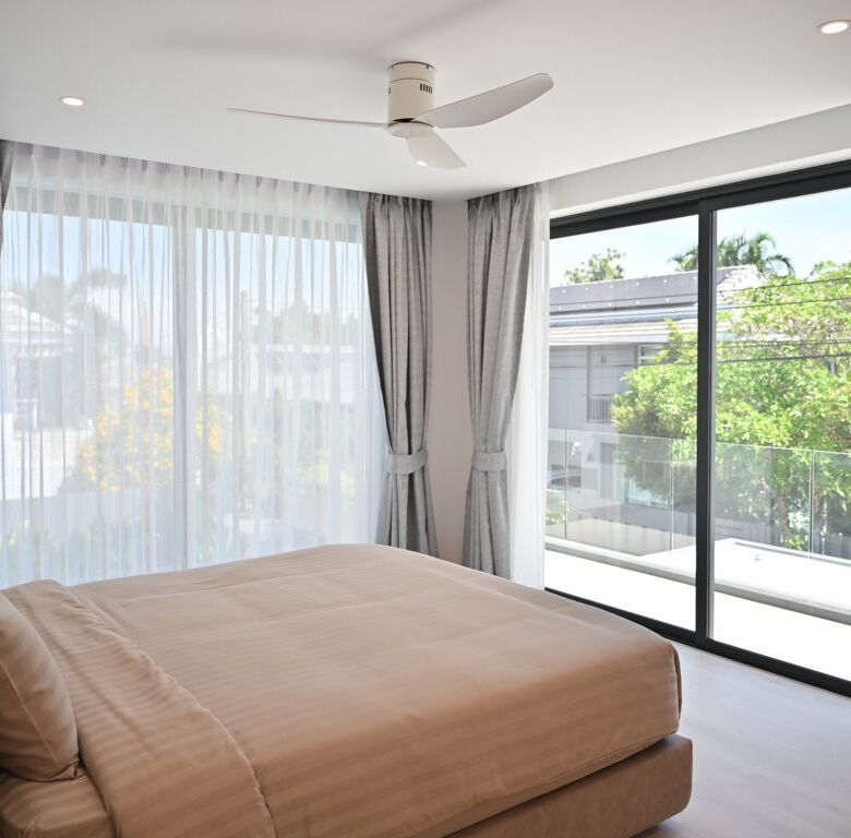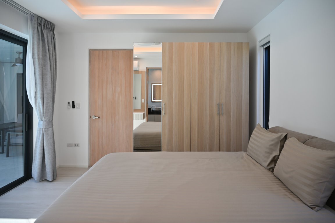 The Greyhouse is designed with a modern minimalist aesthetic, featuring clean lines, neutral grey tones, and expansive glass elements that invite natural light throughout the home. The villa emphasizes indoor-outdoor living, allowing residents to fully embrace Phuket’s tropical climate.
