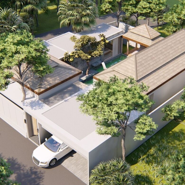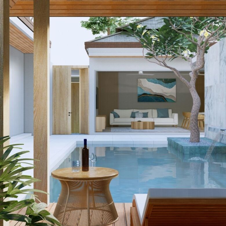 Each villa offers 3 bedrooms, 4 bathrooms, and a smart single-level layout that wraps around a private saltwater pool (8 x 3.15 meters) and sun deck. The design emphasizes open living, blending indoor and outdoor spaces to create a bright and relaxed atmosphere perfect for tropical living.