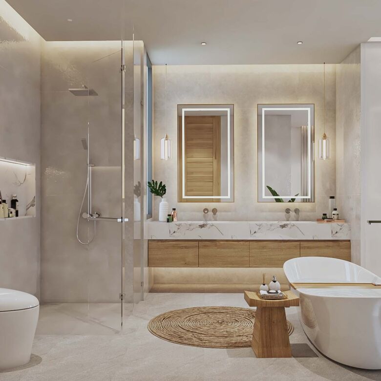 - Premium sanitary ware (TOTO, American Standard or equivalent)