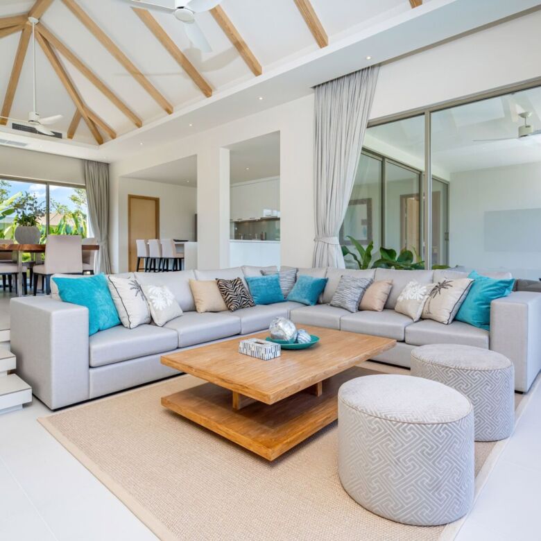 This beautifully finished 4-bedroom, 3-bathroom Trichada Breeze Phuket villa is located in Cherngtalay, Phuket. Surrounded by lush greenery and nestled in a private gated community, this single-storey home offers the ideal blend of comfort, style, and practicality—perfect for family living or a tropical holiday retreat.