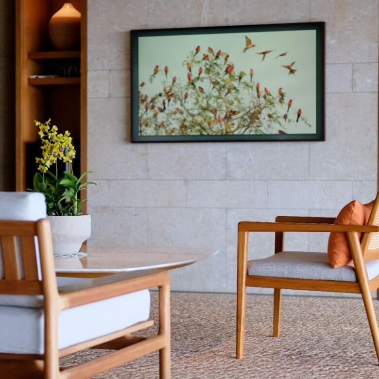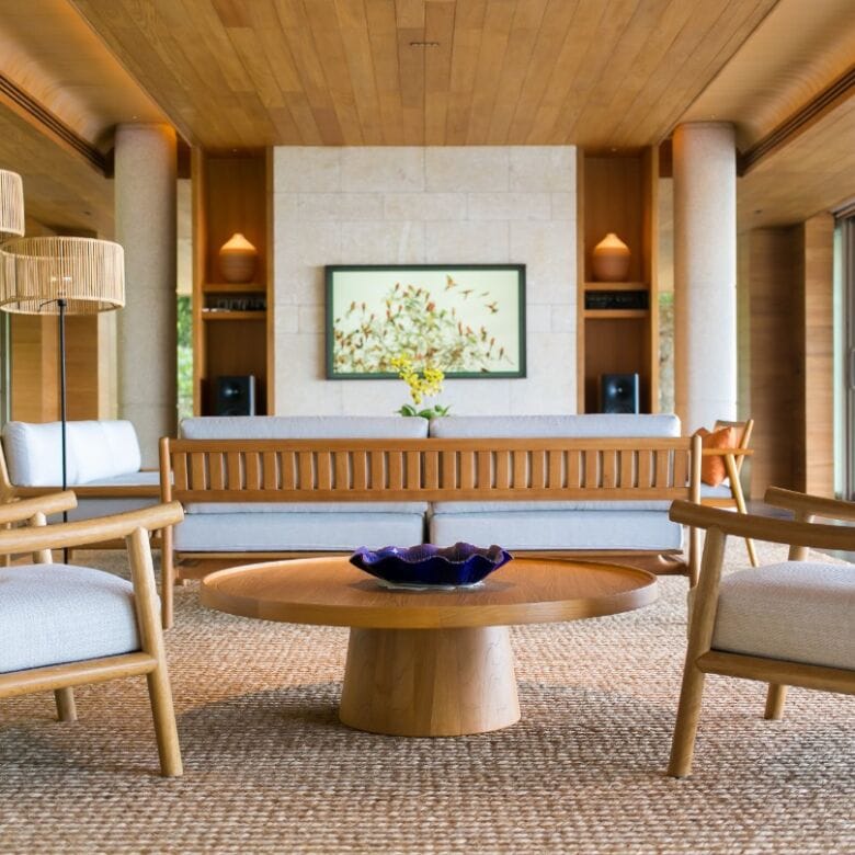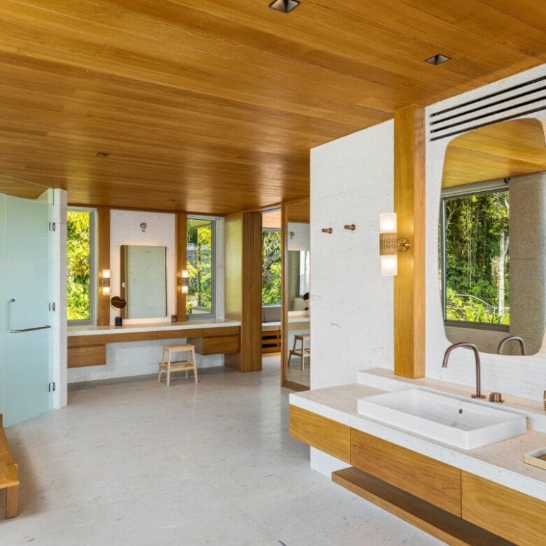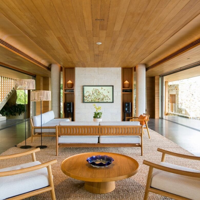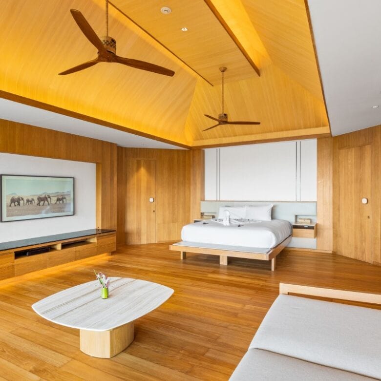 Step into a world of refined aesthetics with teak adorning floors, ceilings, walls, and furniture. Imported stone from Brazil and Italy, as well as coral stone from the USA, elevate the villa’s grandeur. Spanish fabrics and Thai silk add a touch of international flair, while Cocoon brand taps and faucets imported from Italy showcase an unwavering commitment to quality.