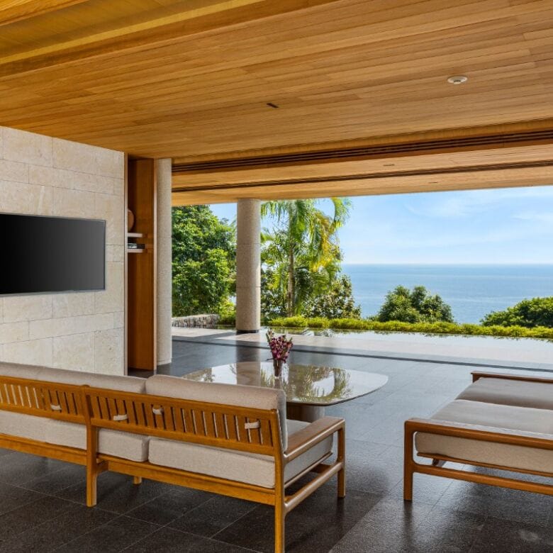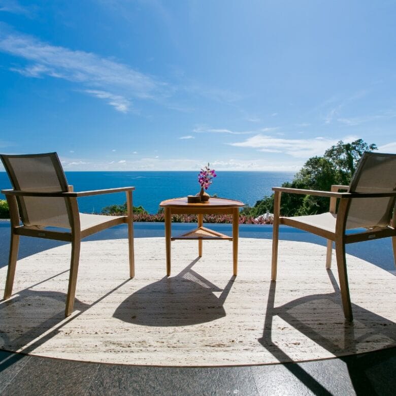 ✔️ Private 25m Infinity Pool – Overlooking the ocean, with covered poolside seating