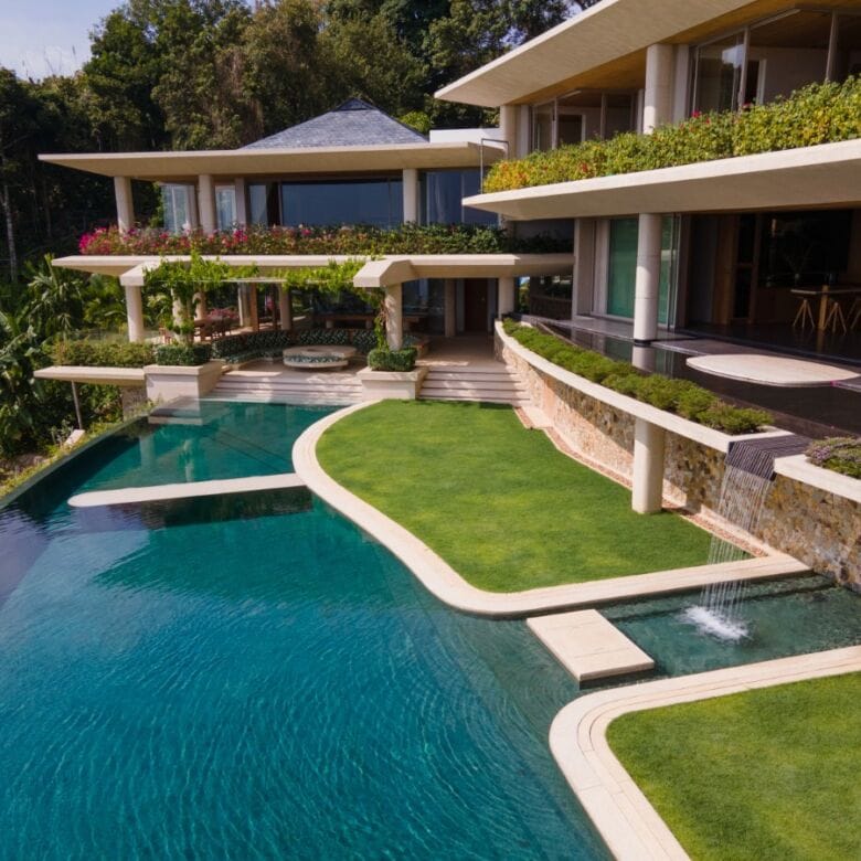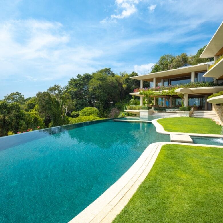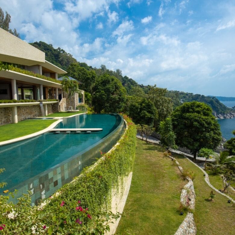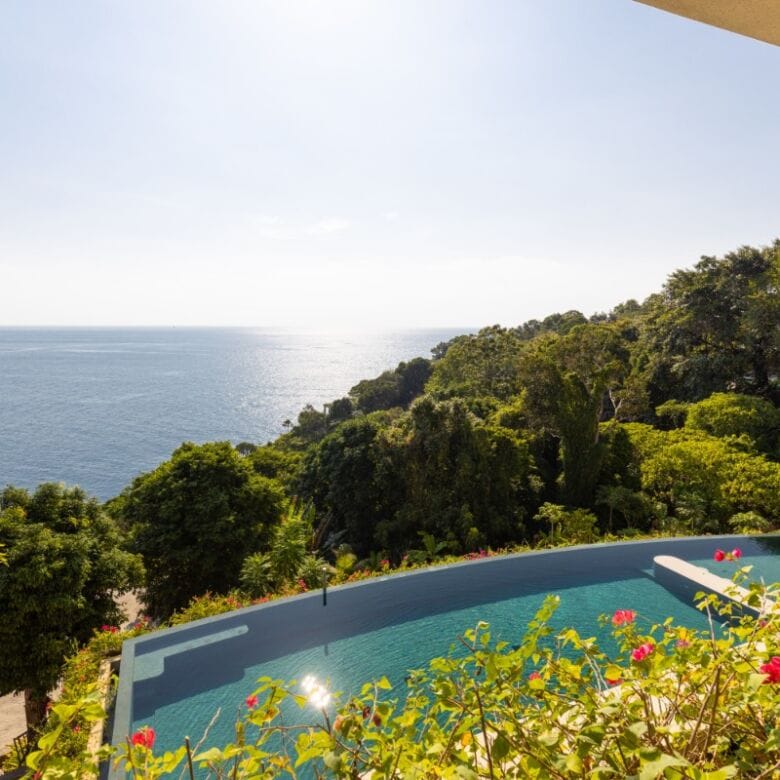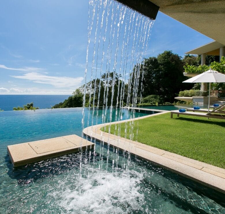 Nestled within the exclusive confines of a gated community with 24-hour estate security, Villa Cascade stands as a testament to sophistication yet casual elegance. This architectural masterpiece spans a vast sea-view land plot of 3,404 sqm, offering an unparalleled living experience that seamlessly blends lavish comforts with breathtaking natural surroundings. The villa is beside a year-round waterfall/ cascade from which the villa derives its name and a pathway beside the waterfall leads down to the ocean cove from where one can swim, snorkel and dive.