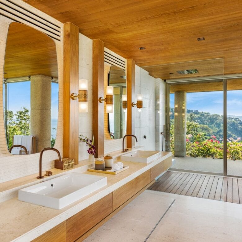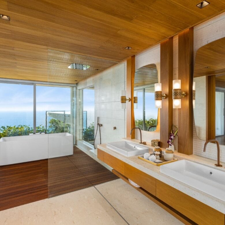 Unwind in style with a 25m x 8m jetted infinity pool with a swim-up bar, children’s area overlooking the picturesque landscape, complemented by extensive outdoor terracing that affords sweeping ocean views. The villa’s terraced lawn area, positioned next to a cascading waterfall, creates an enchanting atmosphere of tranquility. The villa has two fully equipped fitness rooms, one prioritizing aerobic and dance and the second housing an extensive array of top-quality fitness machines. A full-featured spa, a cinema and media room, and the dedicated studio and private relaxation terrace.