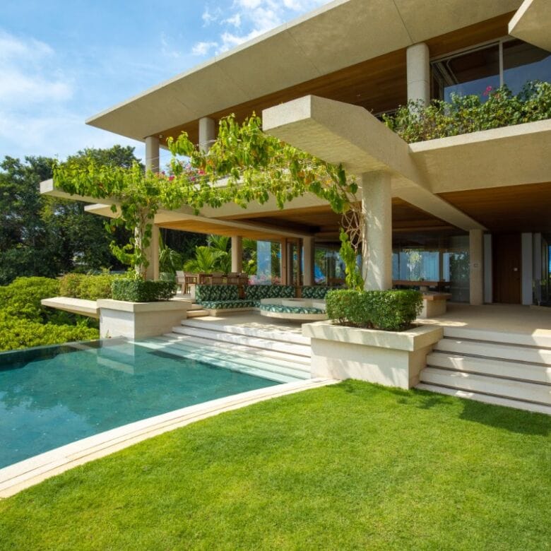 The villa is priced in USD at $14.9M USD, with the shown Thai baht price an approximation of this figure. Please check the exchange rate to get the accurate THB price.
