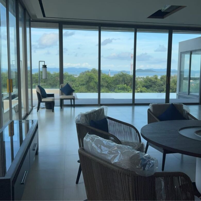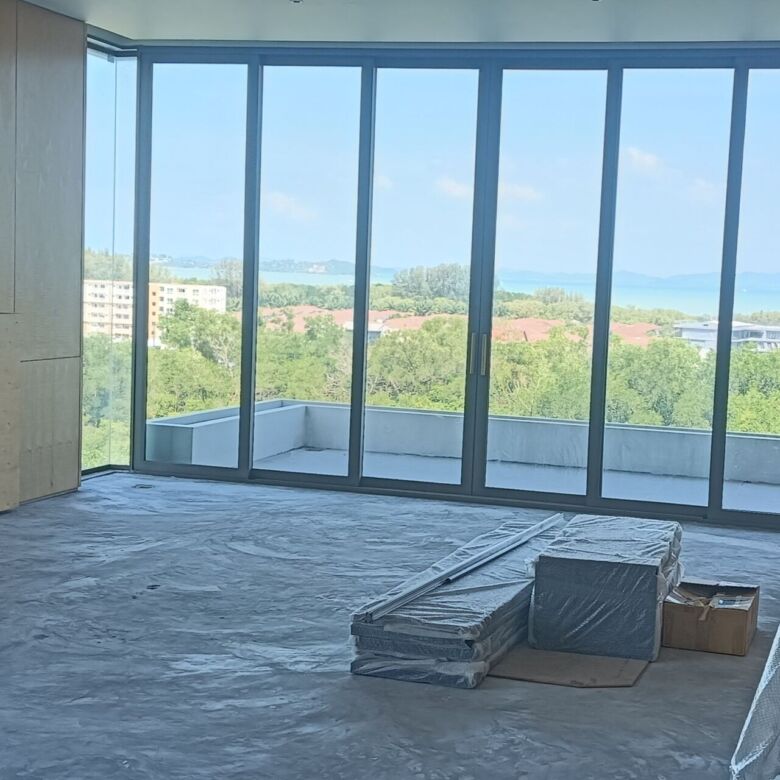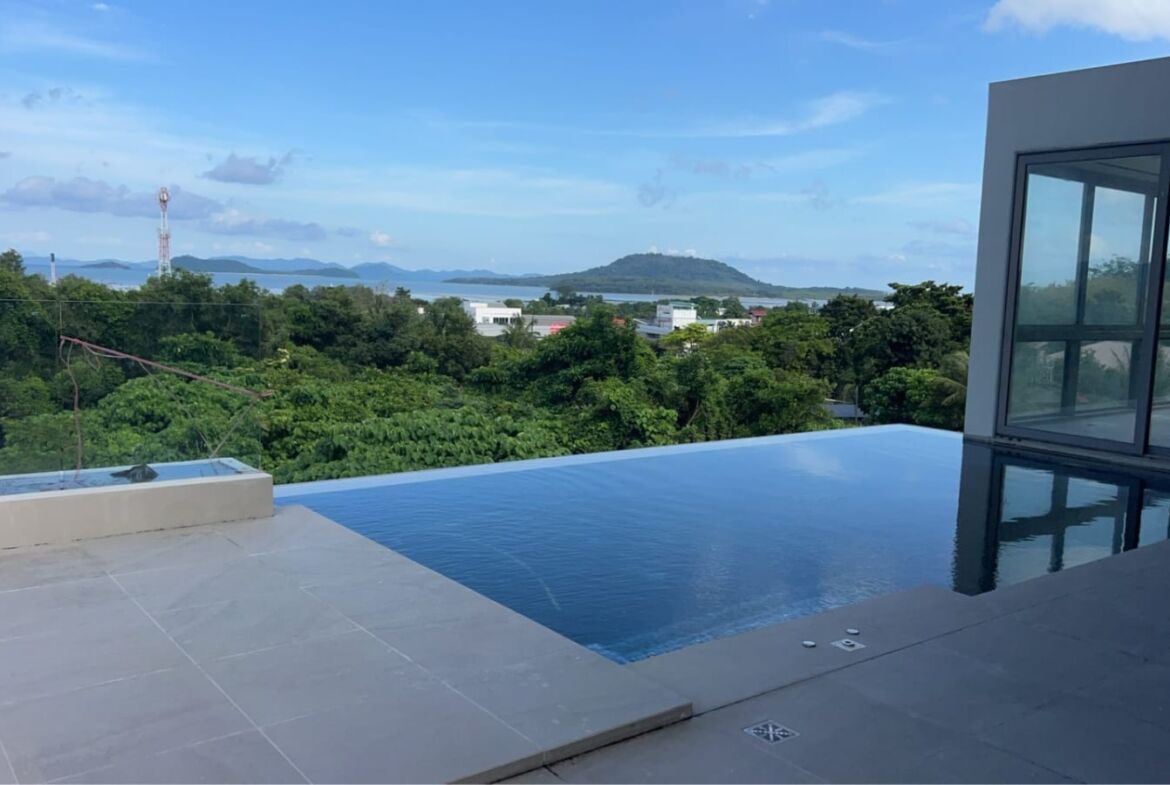 Discover this near-complete luxury sea view villa in the serene hills of Koh Keaw, perfectly positioned to capture stunning east-facing vistas across Phuket’s shimmering coastline. At 90% constructed, this modern masterpiece offers a generous Gross Floor Area (GFA) of 850 sqm on a solid 576 sqm freehold land plot – prime real estate with room to dream big.