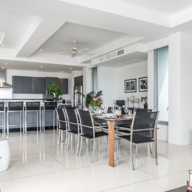 • Main Living Area: A generous open-plan space encompassing formal and informal dining areas, seamlessly connected to the 15-meter infinity-edge swimming pool and sun-soaked terrace.