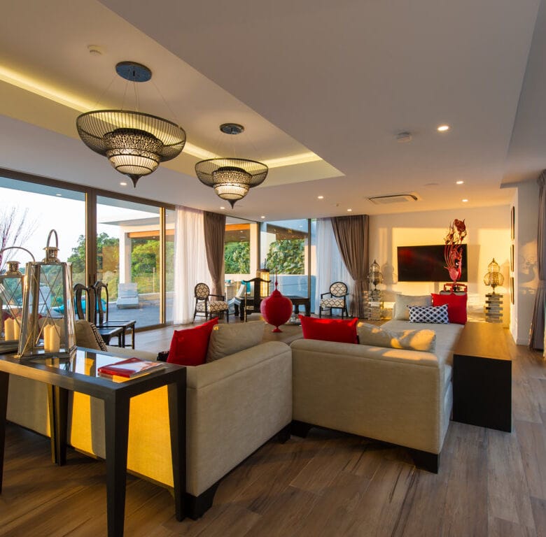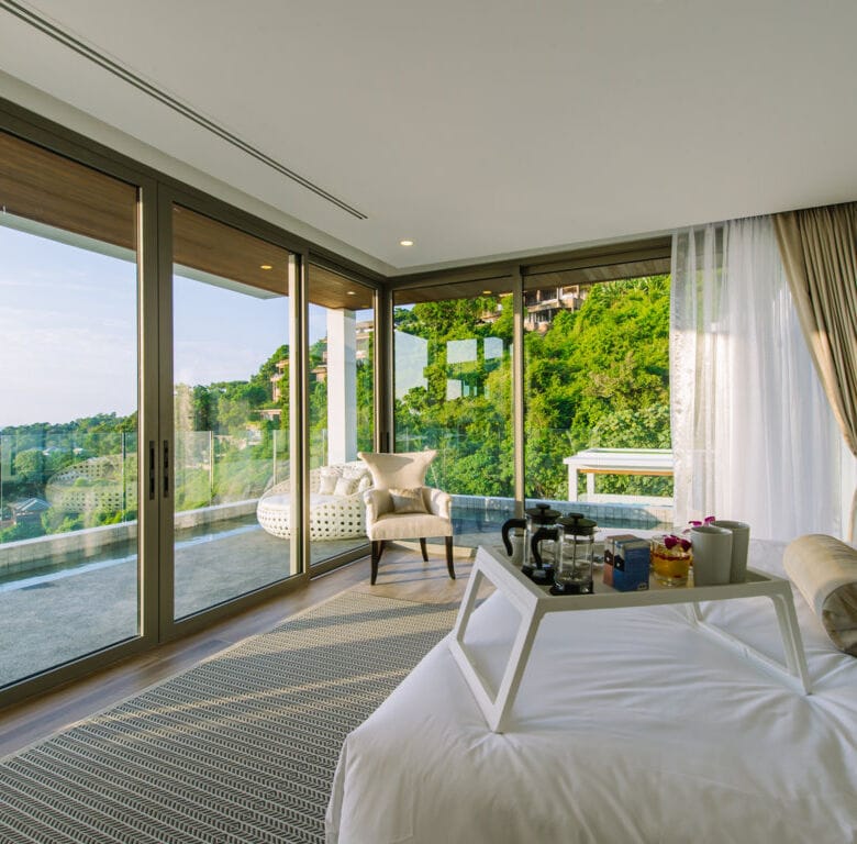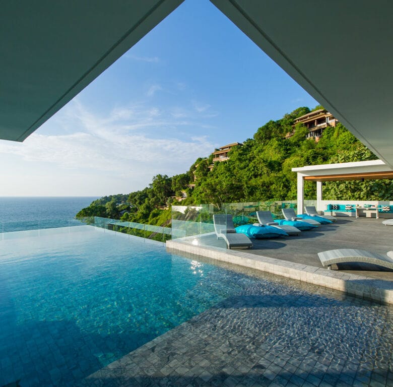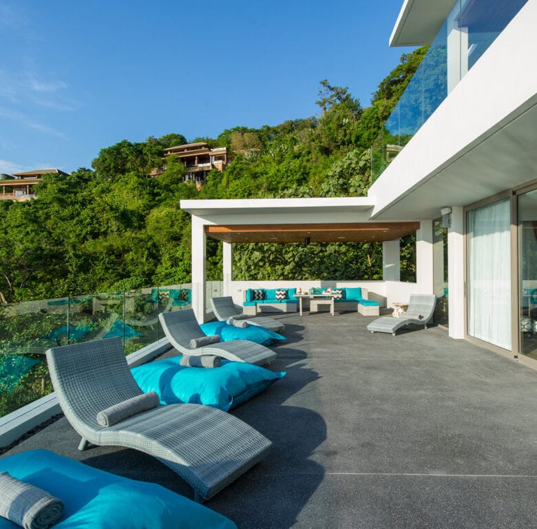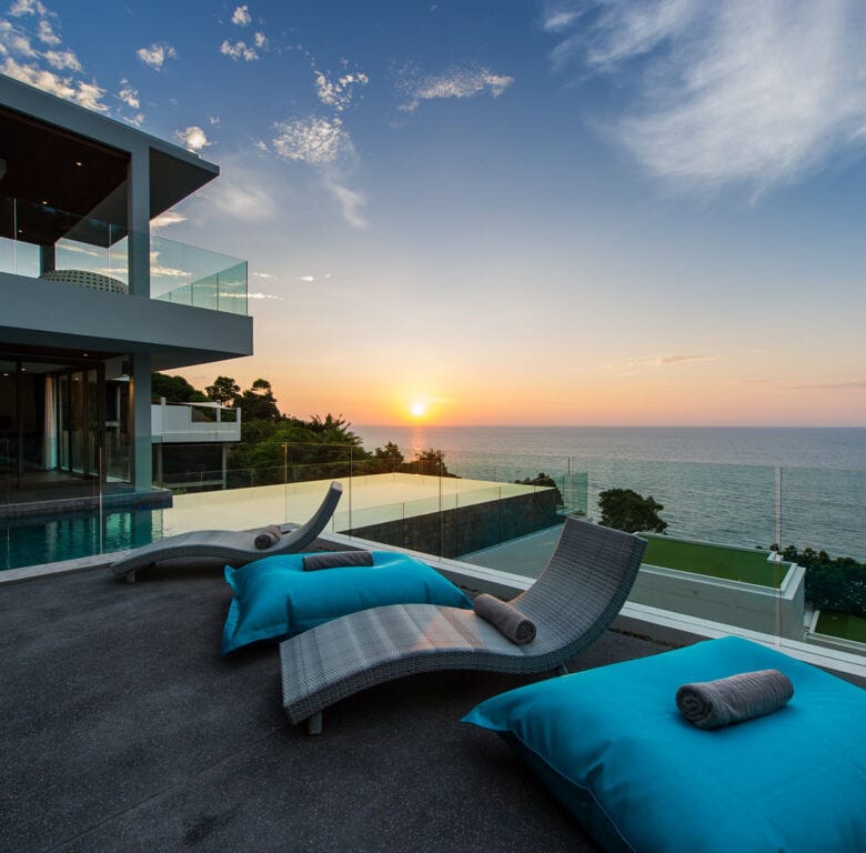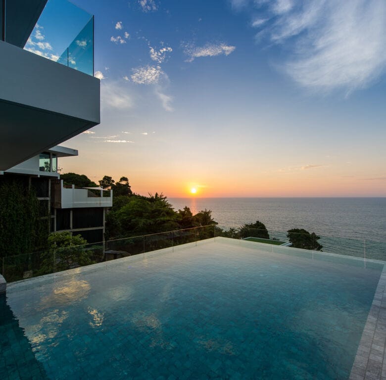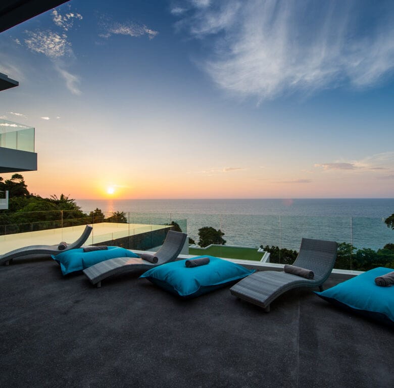 This contemporary six-bedroom villa spans three meticulously designed levels, providing breathtaking panoramic views of the Andaman Sea and mesmerizing sunsets.