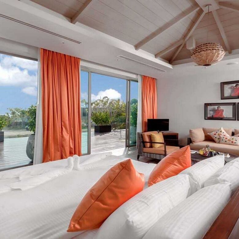 Designed by renowned French designer Carole Bensimon, the villa combines vibrant colors, rich textures, and Thai cultural elements to create a unique and sophisticated ambiance. Each of the 18 spacious suites is fully equipped with air conditioning, a lounge area, a dressing room, and a private en-suite bathroom, while large terraces and polished wooden floors enhance the luxurious experience.