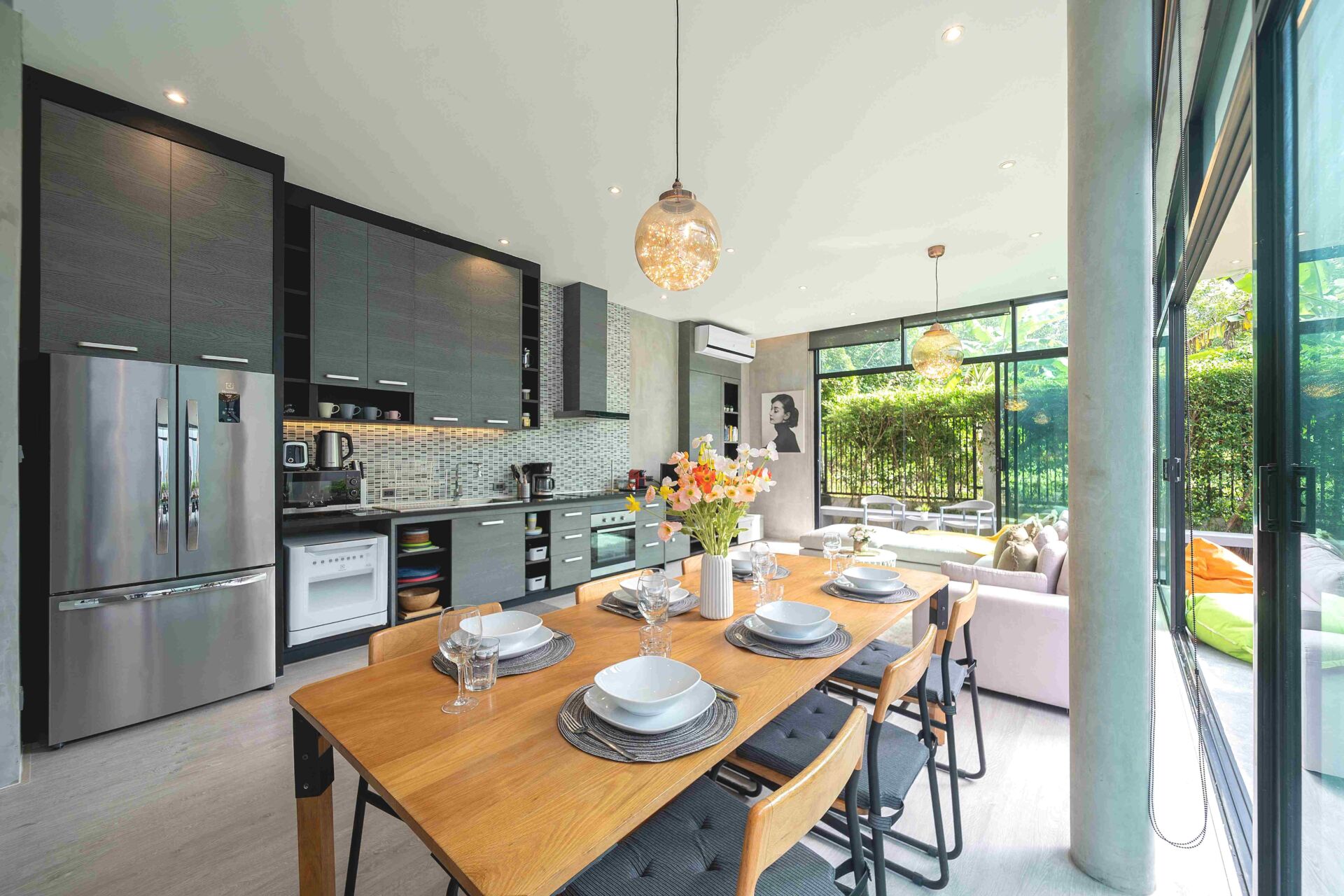 • Fully equipped Western-style kitchen with oven, hob, large fridge-freezer, and dishwasher