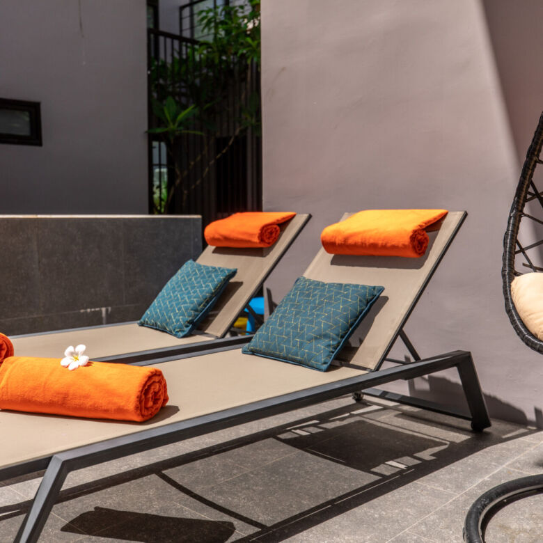 • Private saltwater swimming pool (approx. 8 × 4 m) surrounded by a generous sun terrace